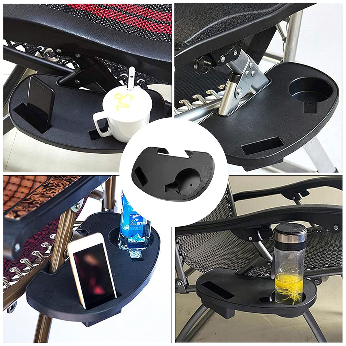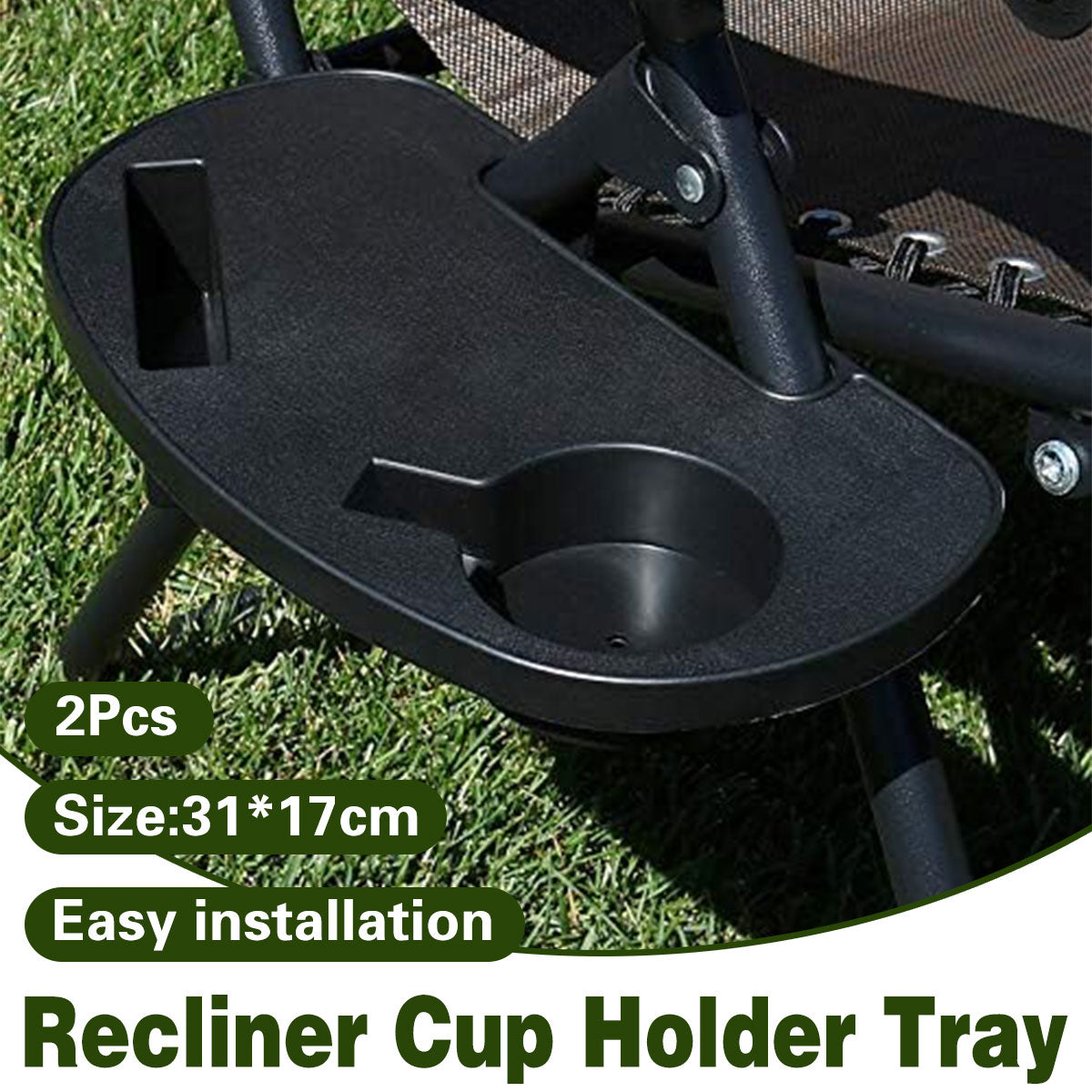 2pcs Clip On Side Table Tray Cup Holder For Sun Lounger Camping Chair Outdoor