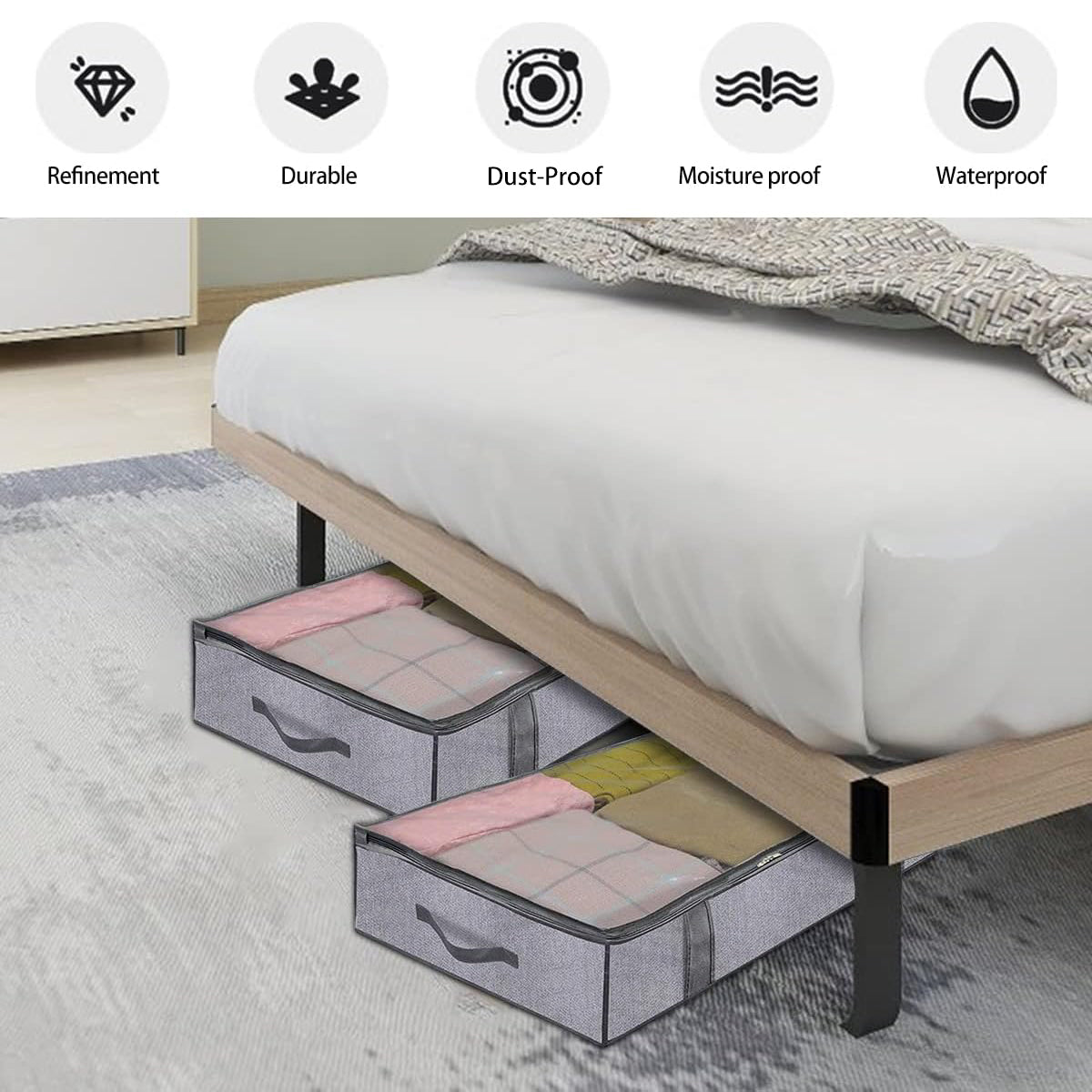 2PCS Clothes Under Bed Storage Bag Wardrobe Dustproof Moisture-proof Organizer Bag