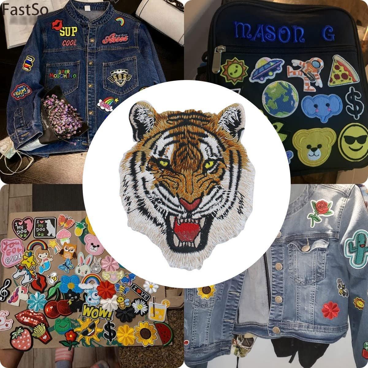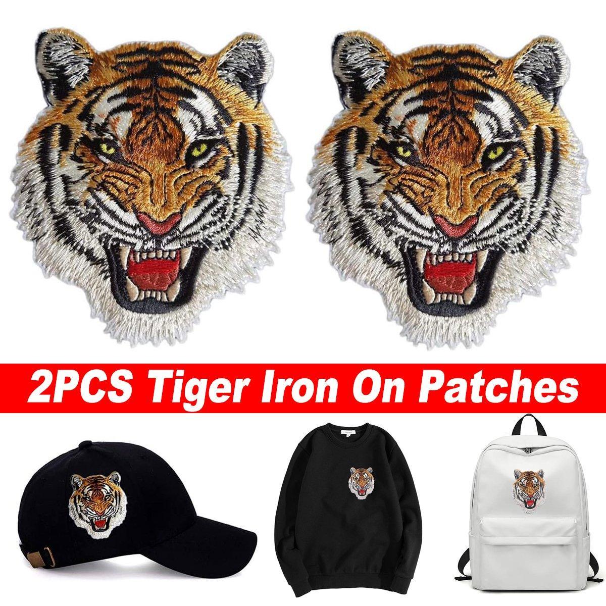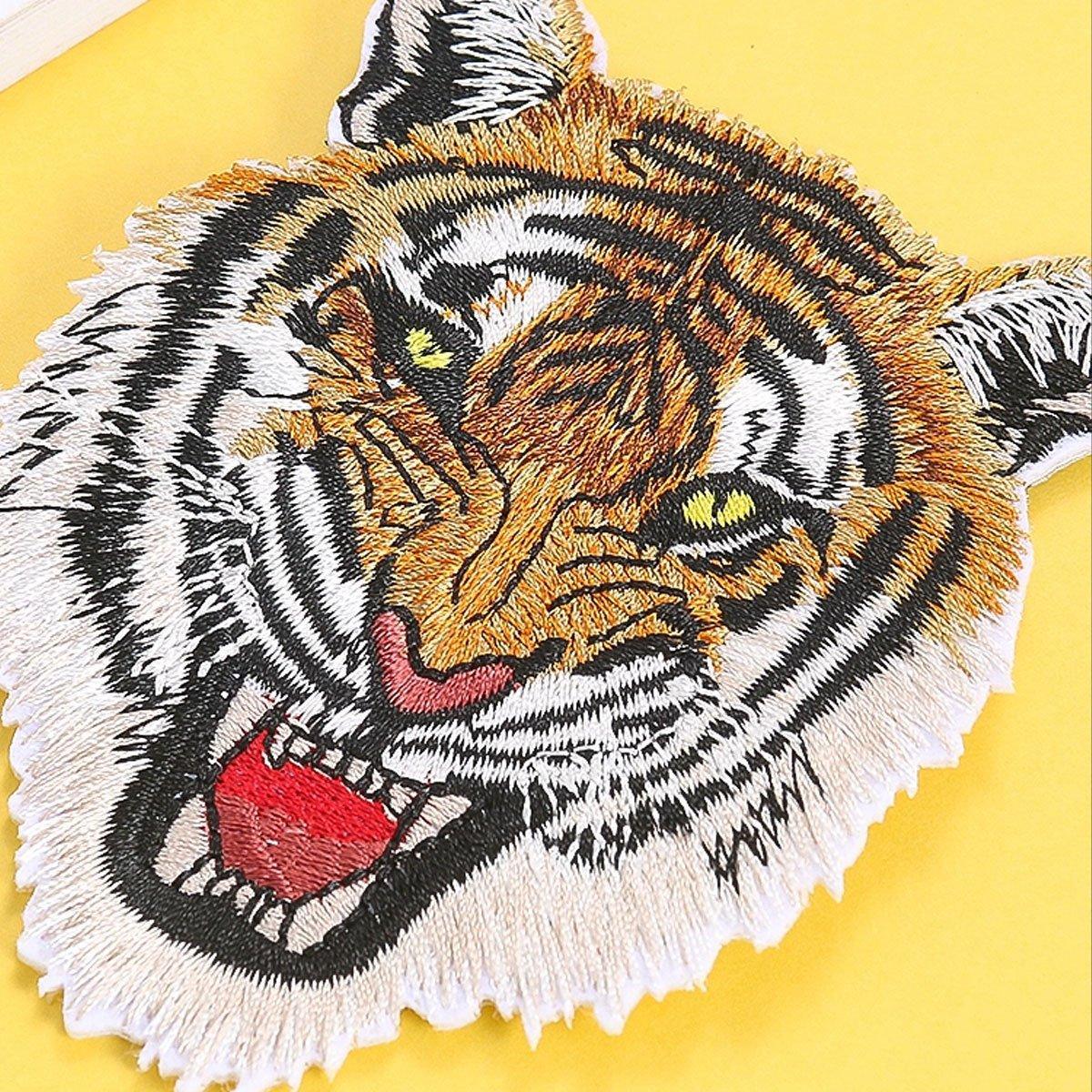 2PCS Embroidery Animal Patches Burned Edge Tiger Lion Cloth Sticker Sewing