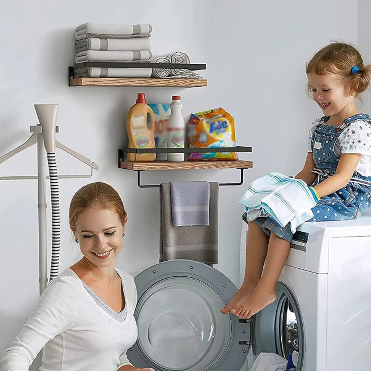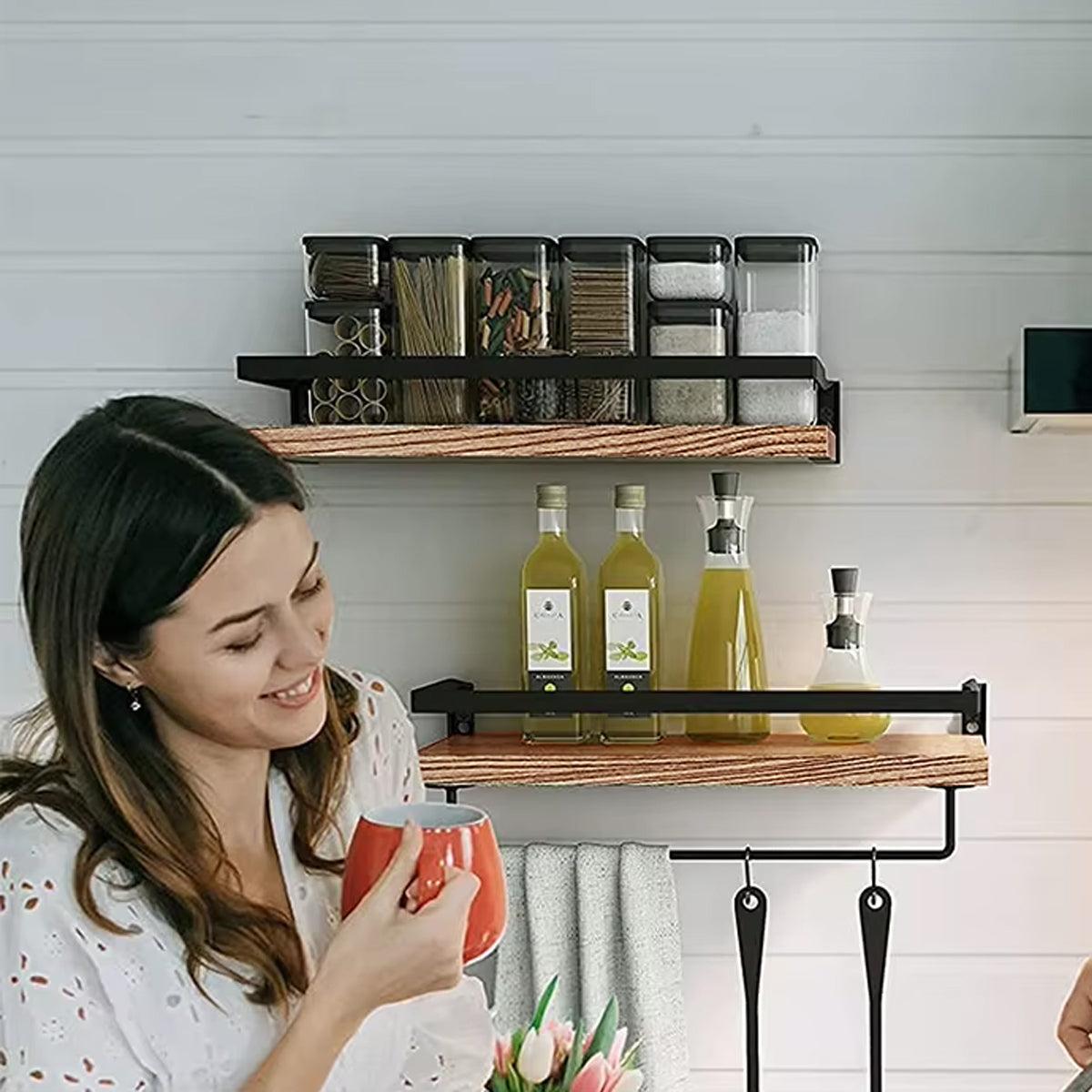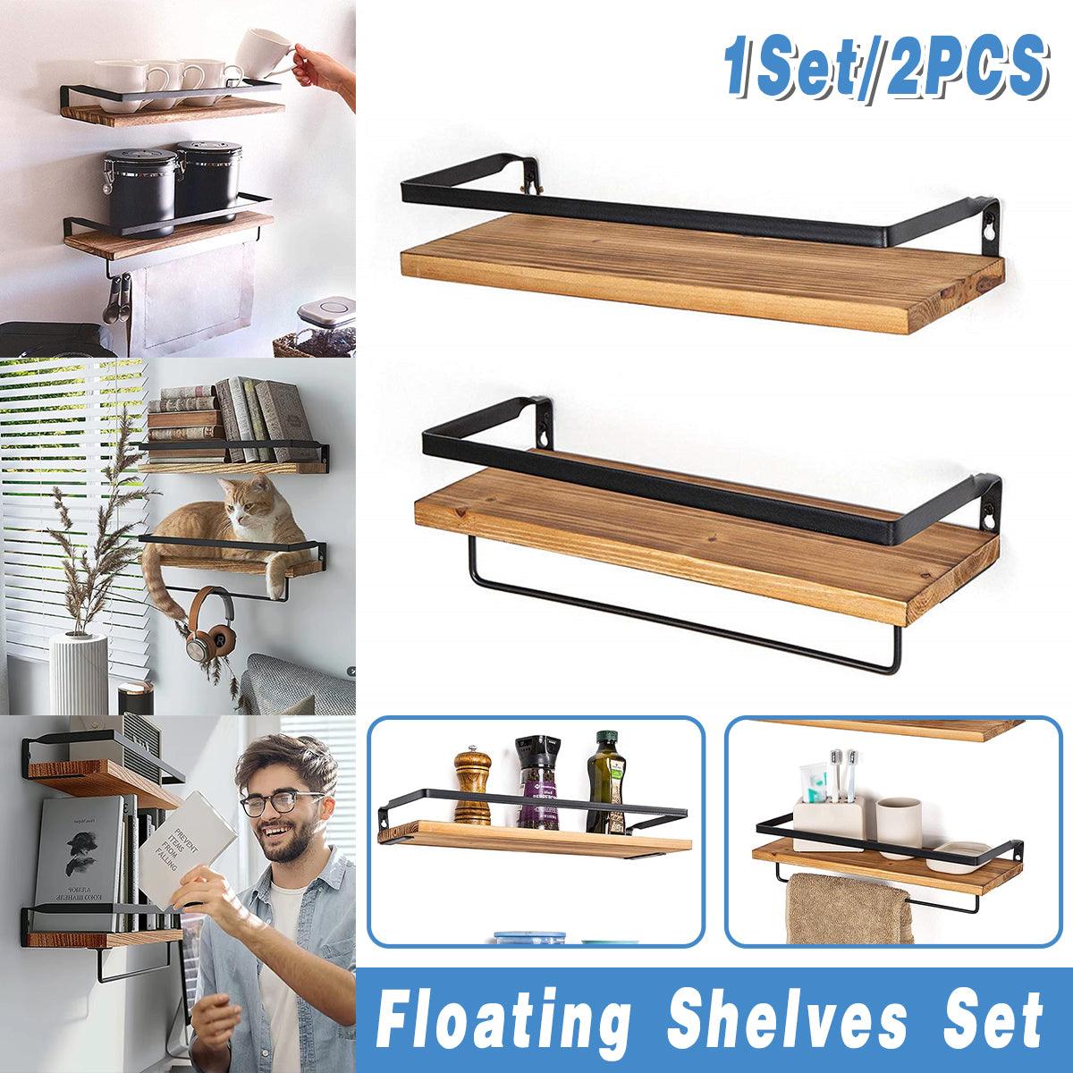 2pcs Floating Wall Shelf Iron Storage Rack Mounted Home Office Decor Organizer