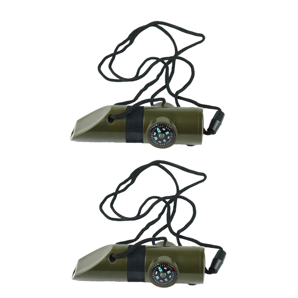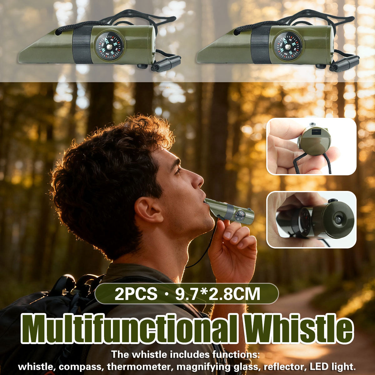 2PCS Outdoor 7 in 1 Multifunctional Emergency Whistle for Camping Hiking Use