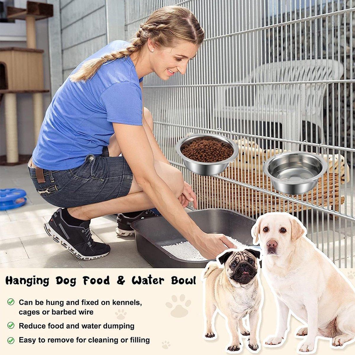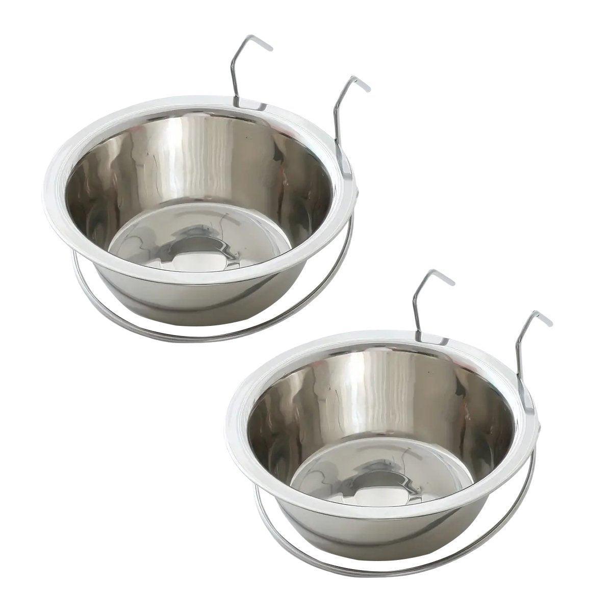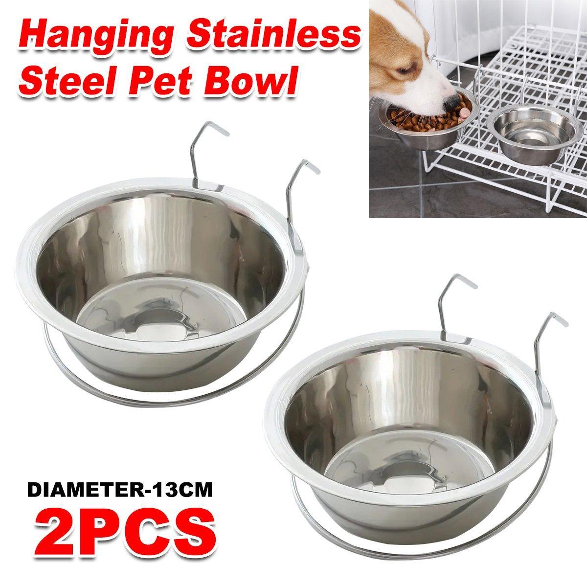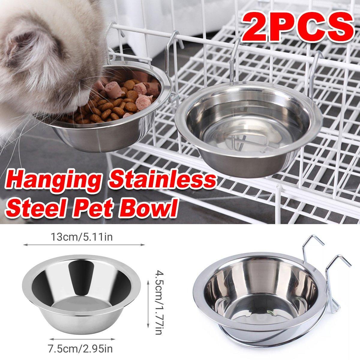 2PCS Pet Bowl Dog Food Cage Crate Water 13CM Hang-on Stainless Steel Metal Cat