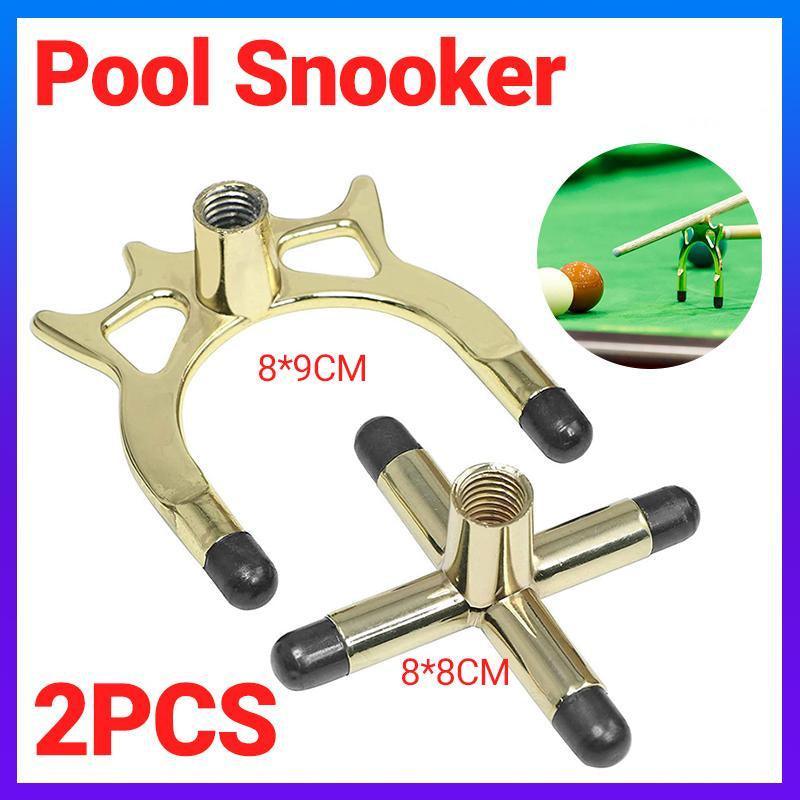 2PCS Pool Snooker Billiard Table Cue Rest Cross And Spider Jigger Brass Set