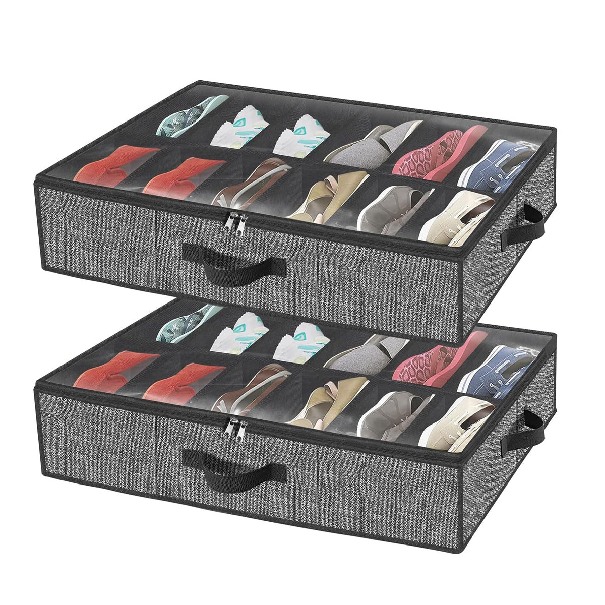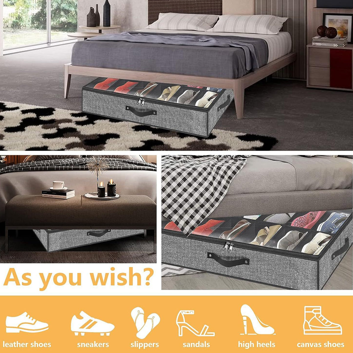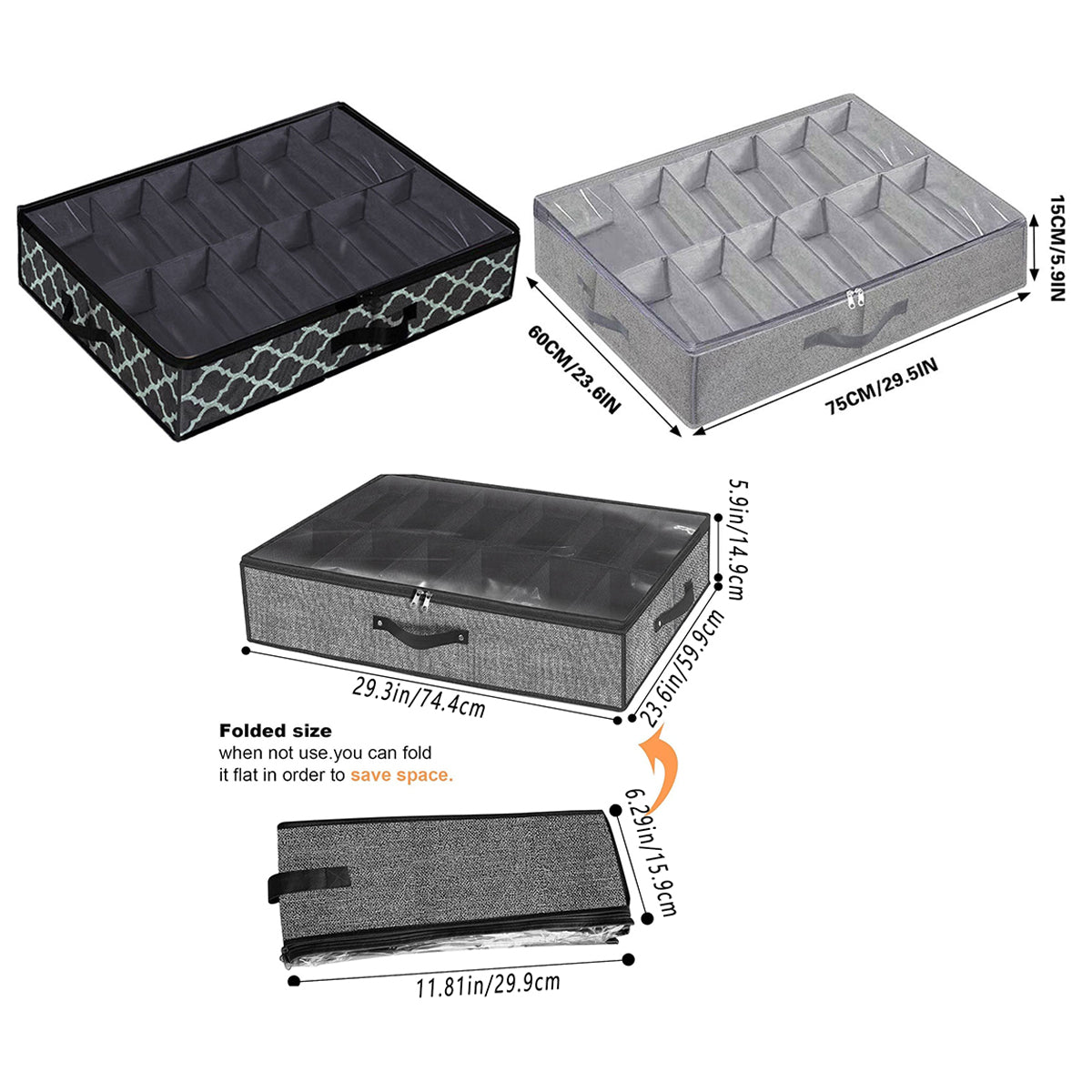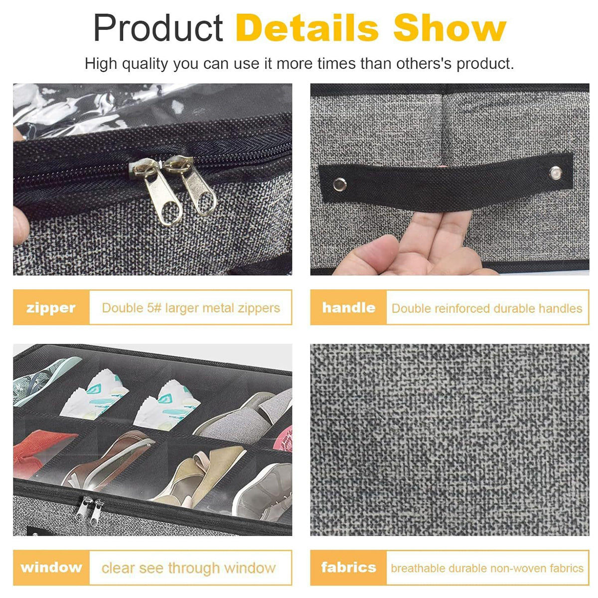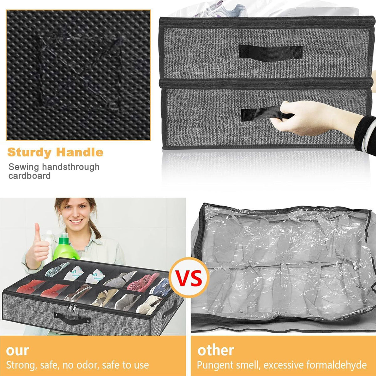 2PCS Shoe Organizer Under Bed Wardrobe Storage Box Zipper Cover Bag Durable