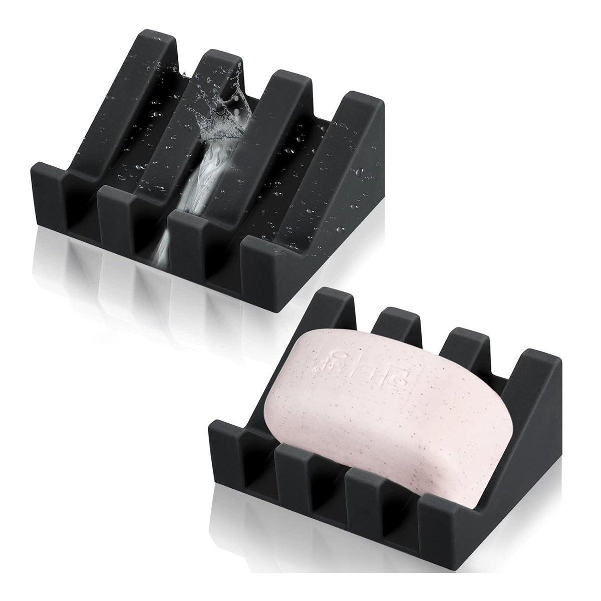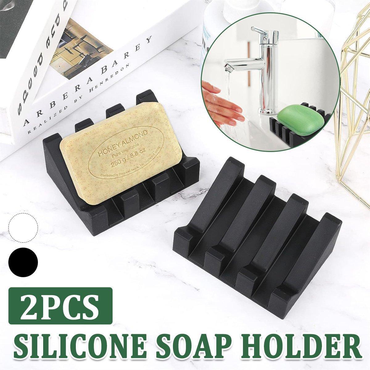 2PCS Silicone Soap Dish Holder Set Non-Slip Draining Soap Box Washable Pad Tray