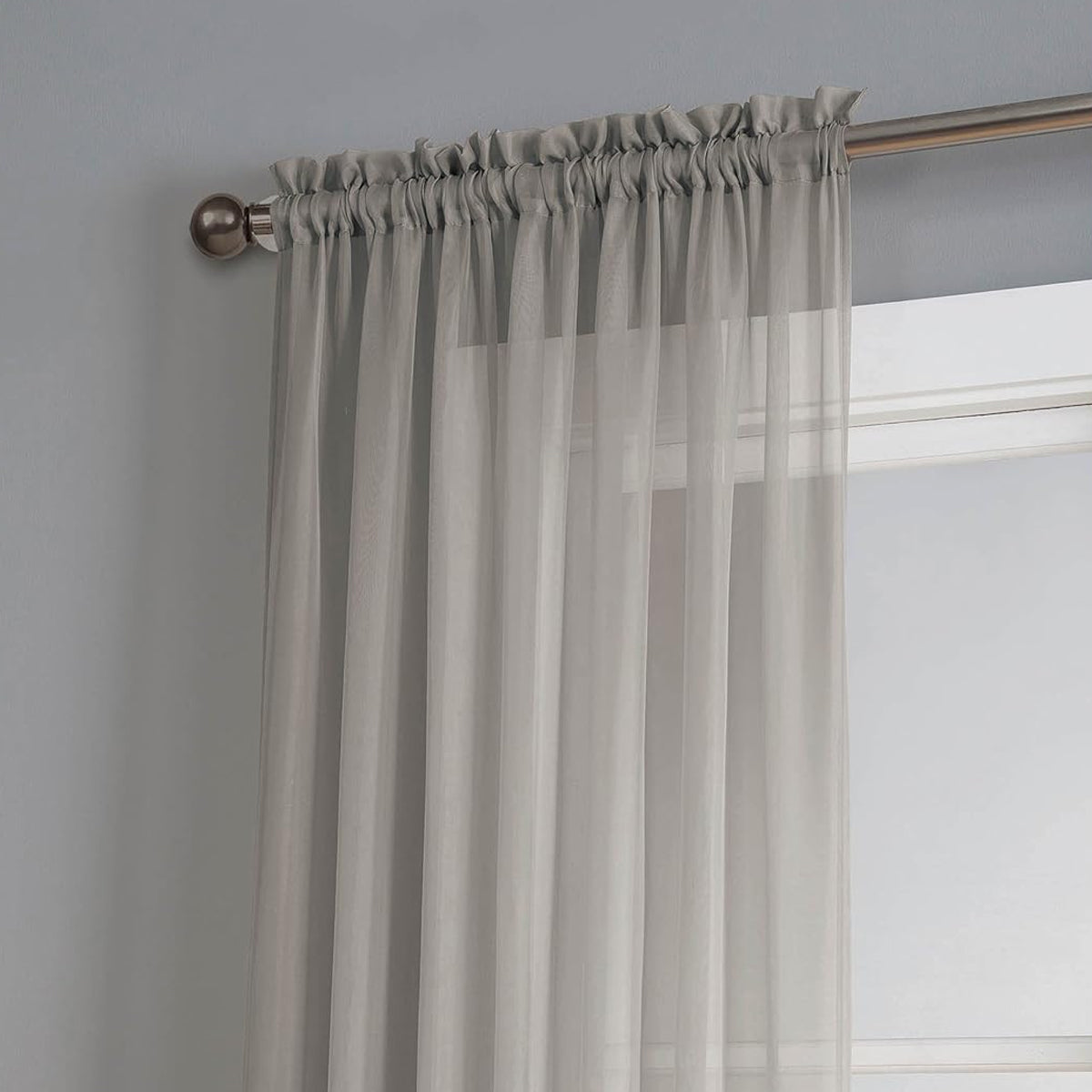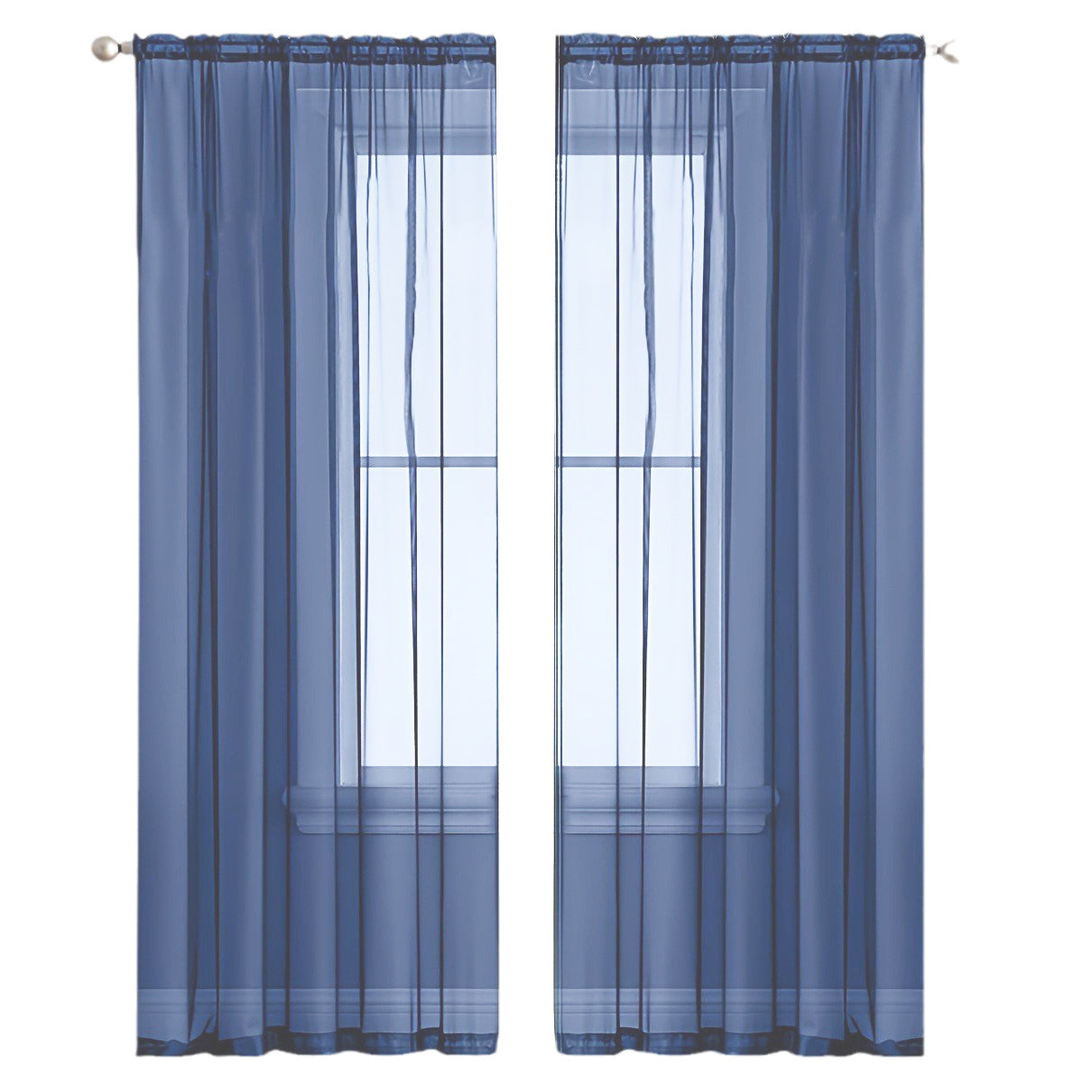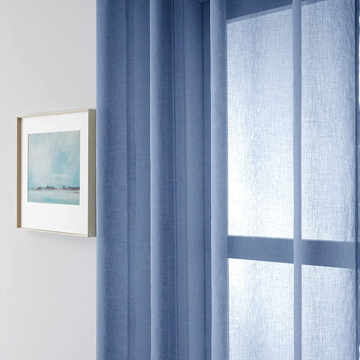 2PCS Solid Color Window Curtains Semi Shading Sheer Drapes Room Divider Use