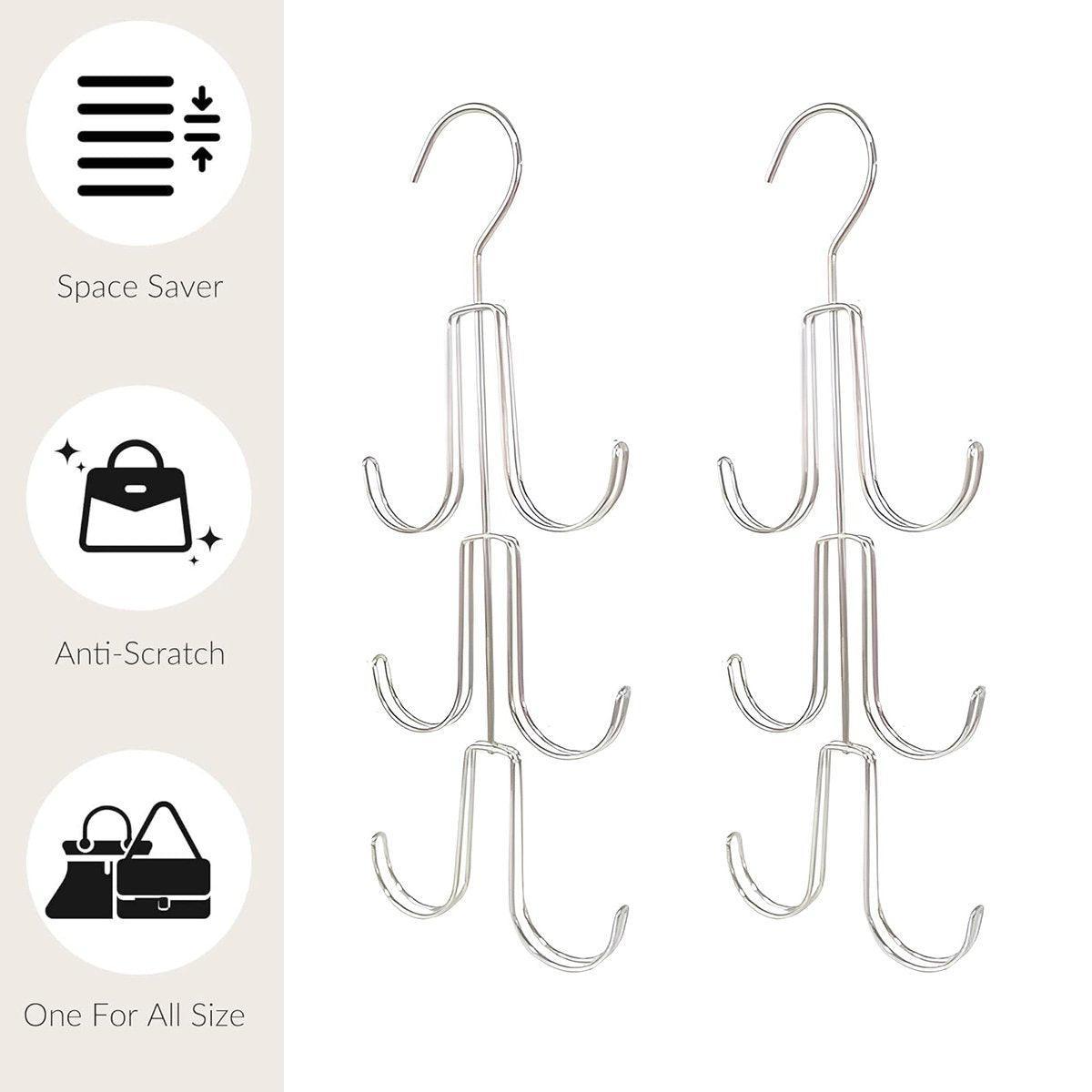2X Purse Hanger Organizer for Closet Purses 6Storage Capacity Hook Wardrobe Rack