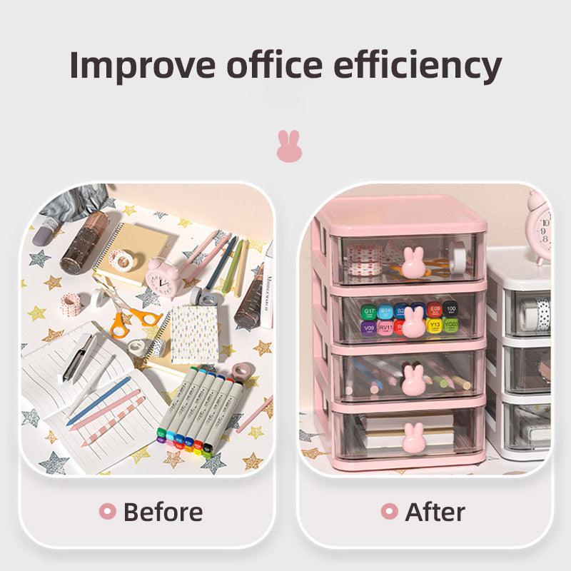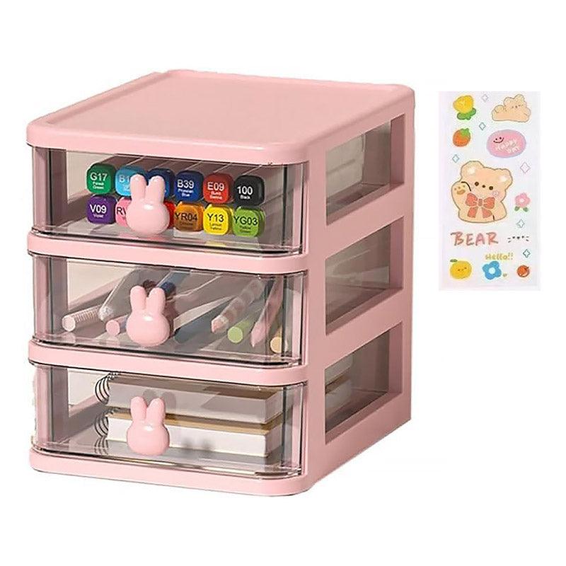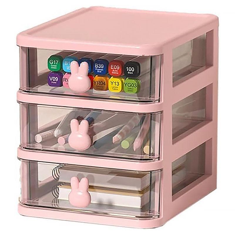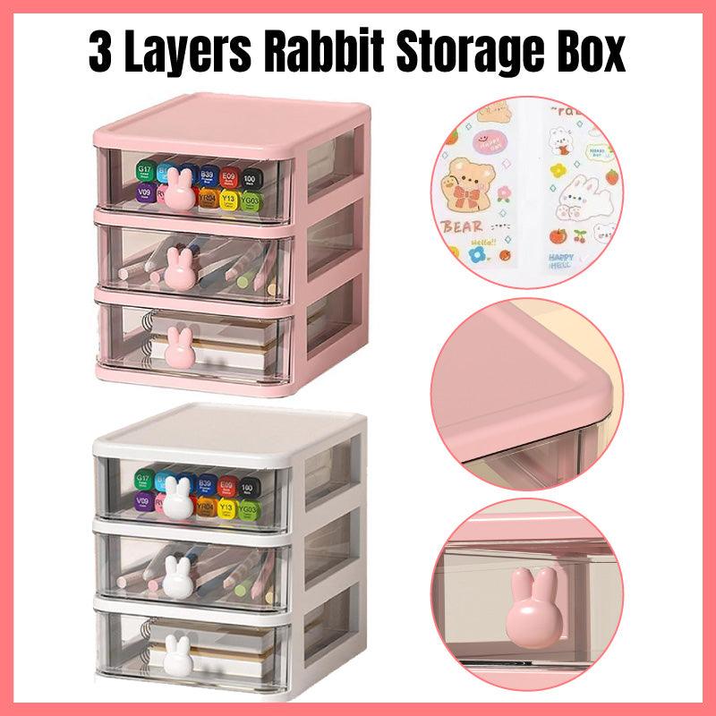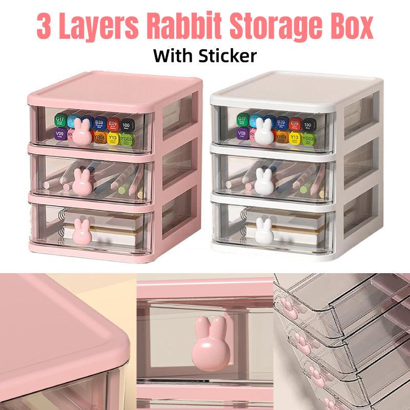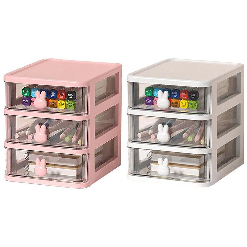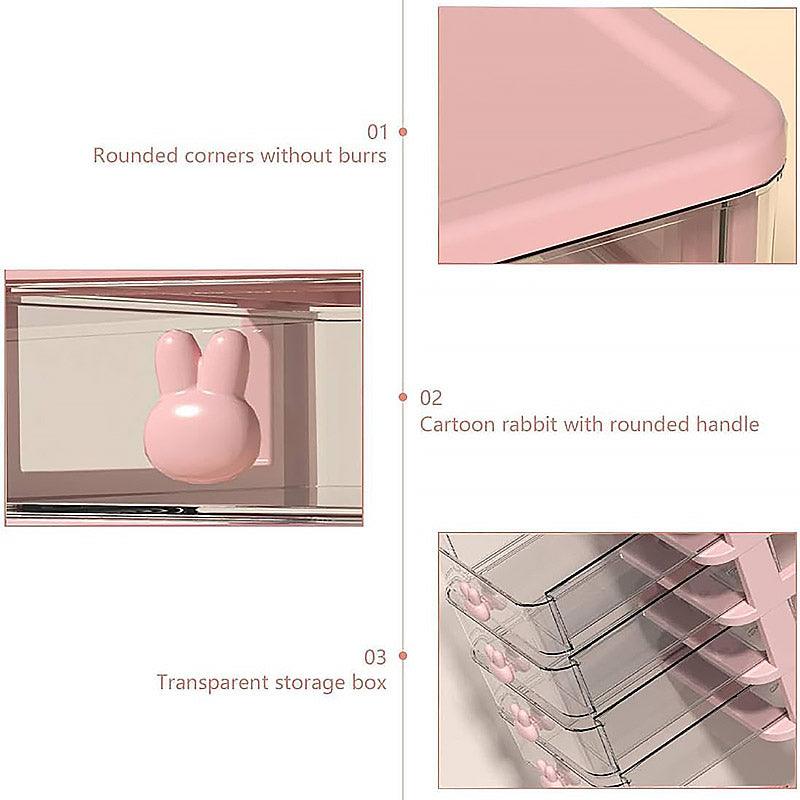 3 Layer Bunny Desktop Organizer Transparent Drawer Storage Box for Home Office