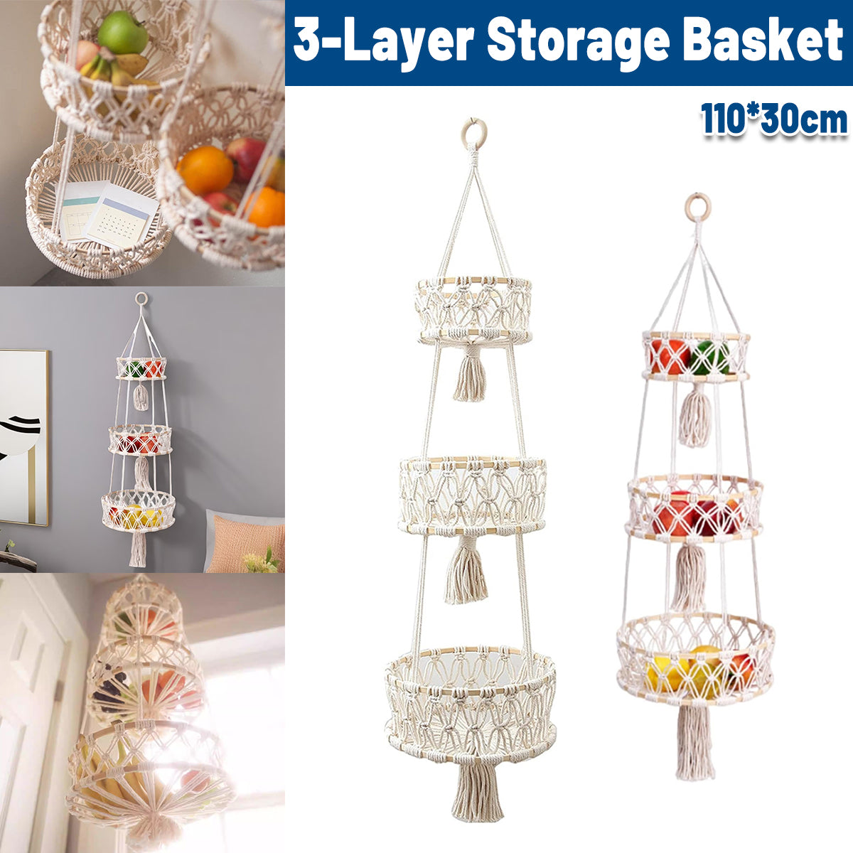 3 Layer Storage Basket for Bathroom Kitchen Bedroom Home Space Saving Durable