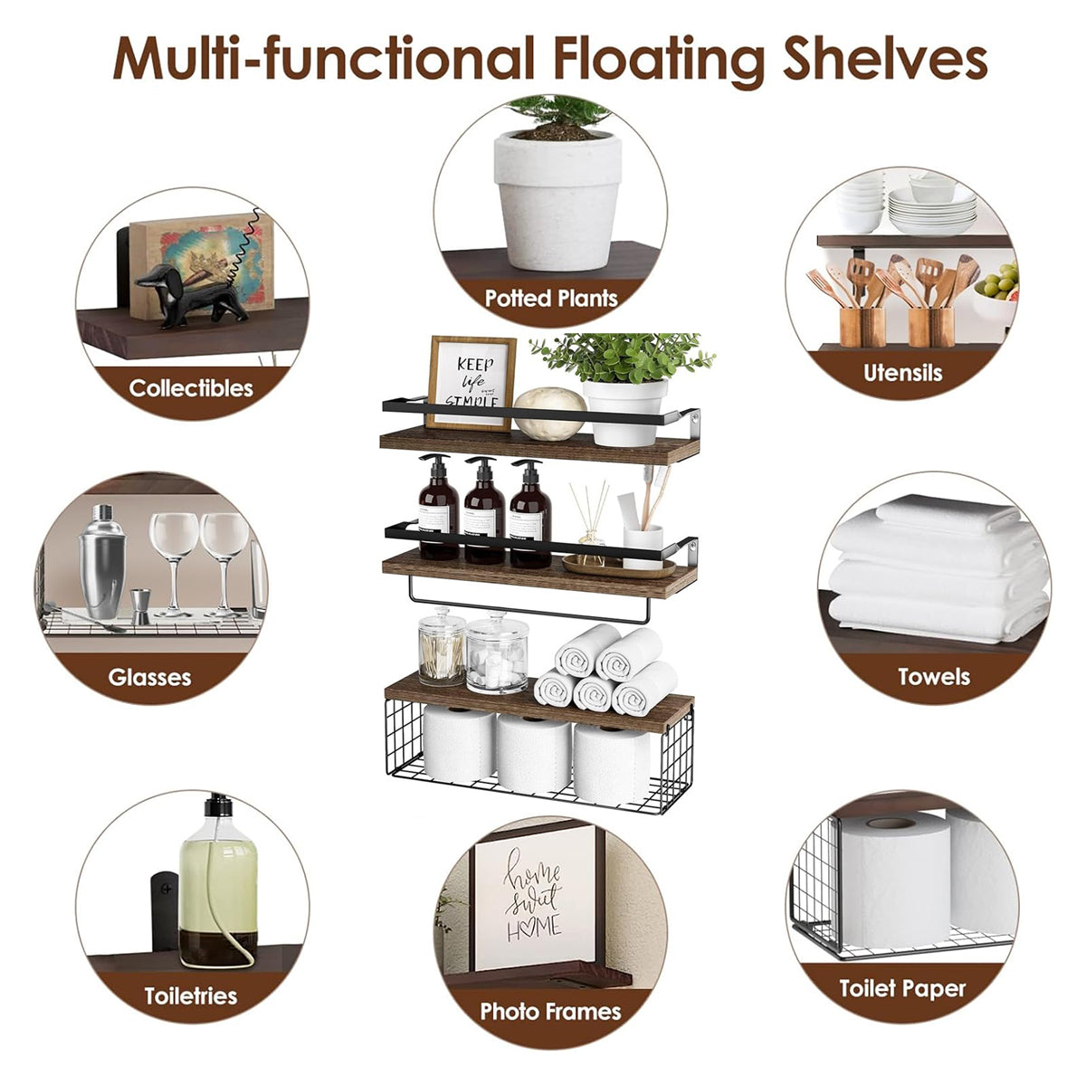 3 PCS Multi Functional Wall Mounted Storage Shelf Space Saving Home Decor