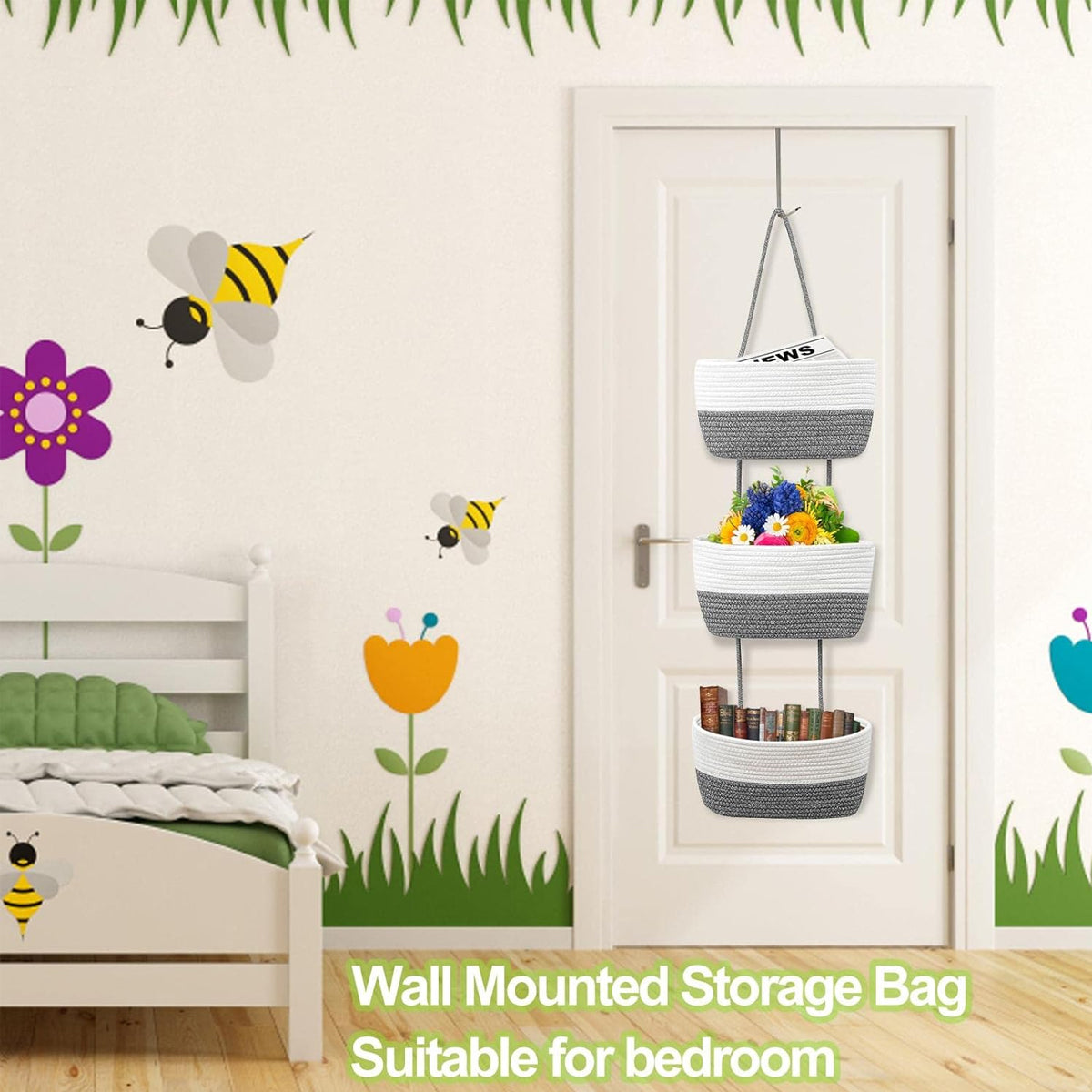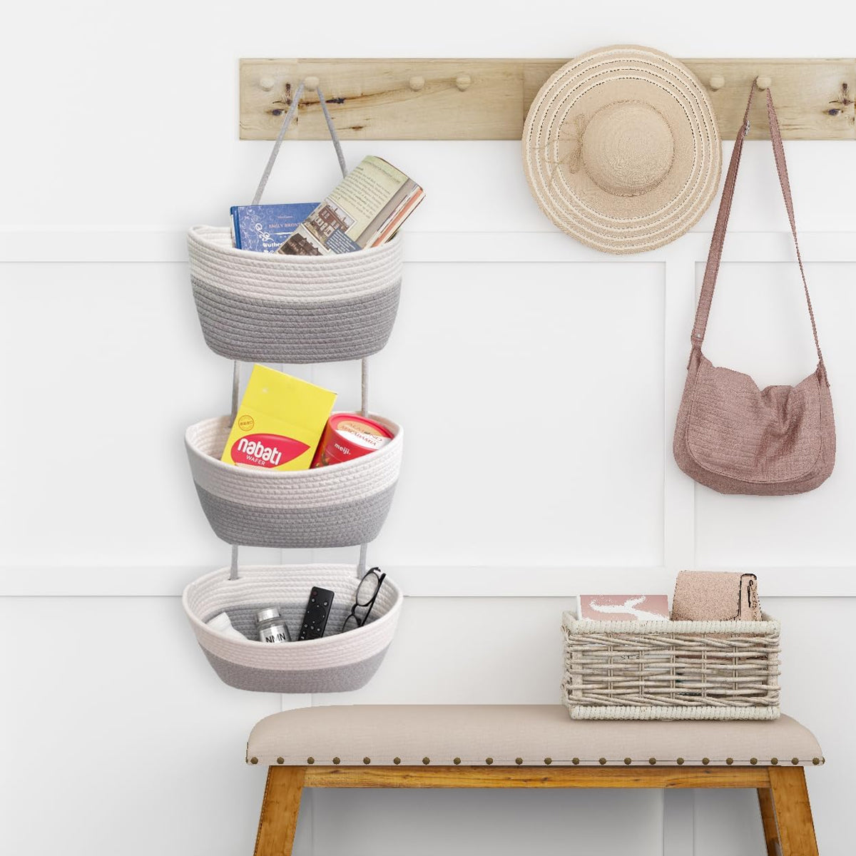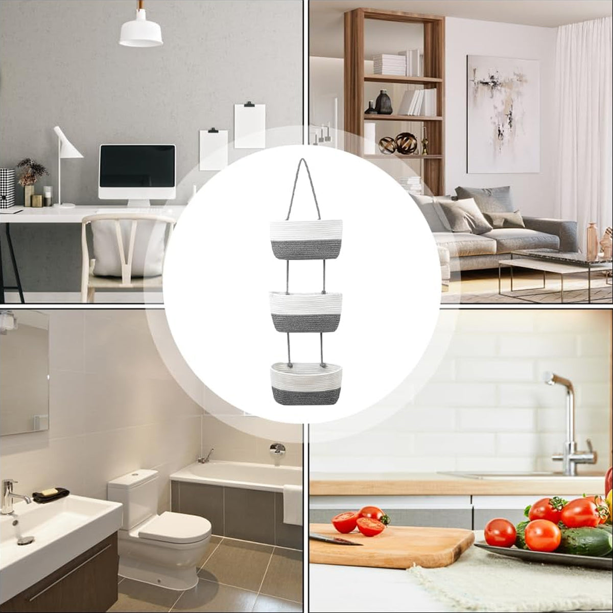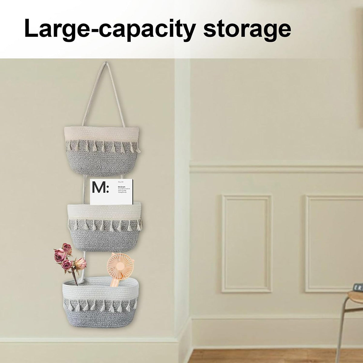 3-Tier Wall-Mounted Hanging Basket Storage Organizer For Clutter Space Saving