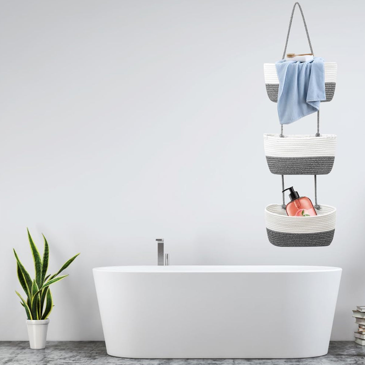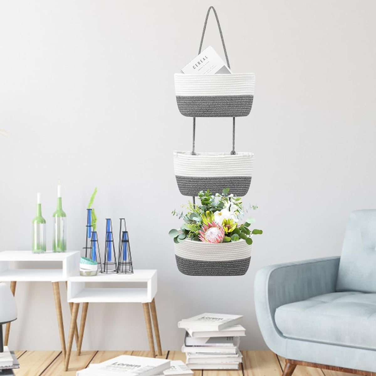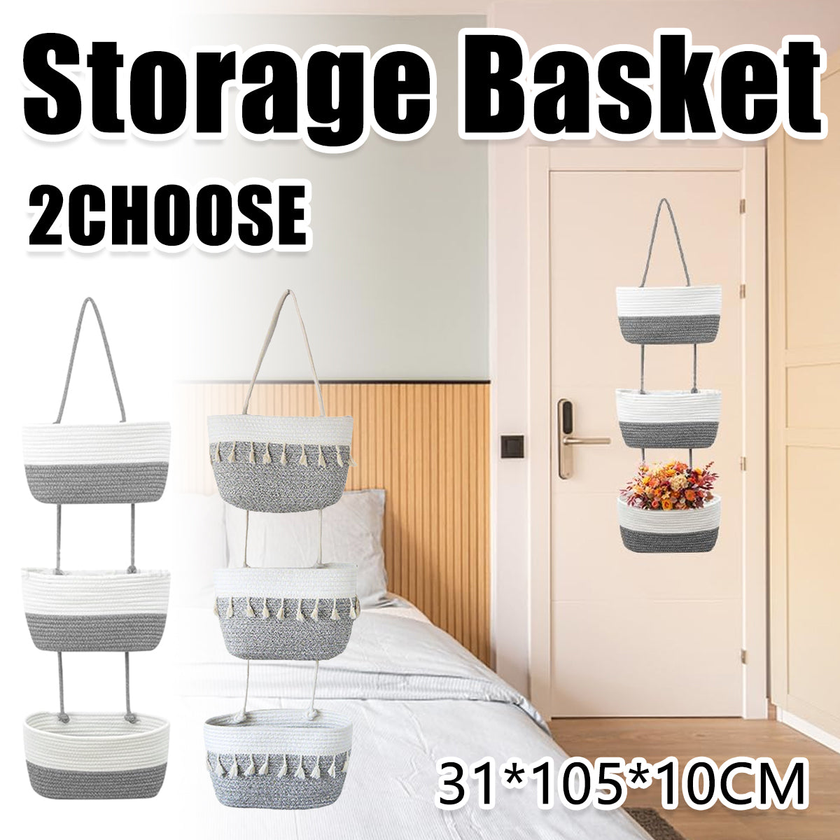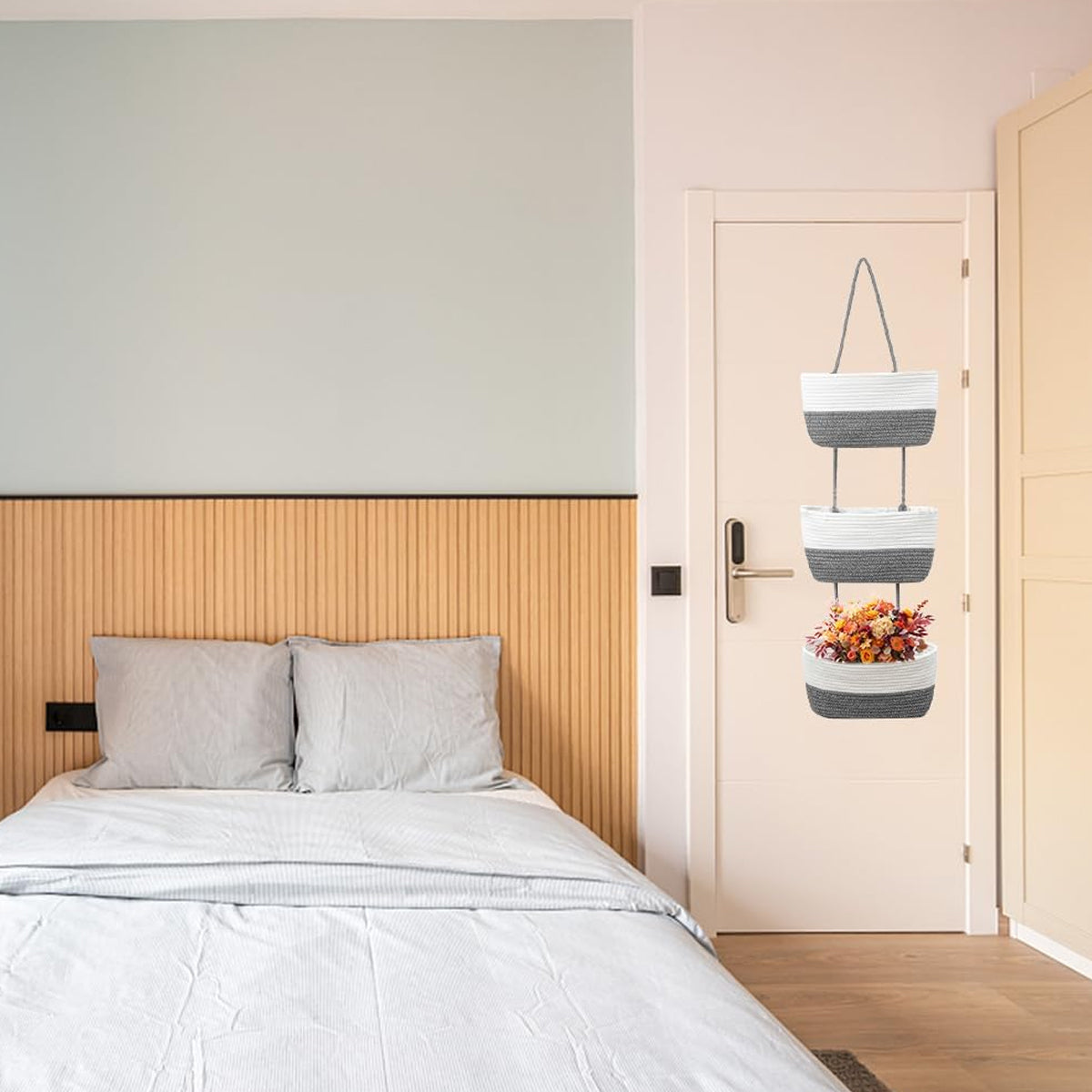 3-Tier Wall-Mounted Hanging Basket Storage Organizer For Clutter Space Saving