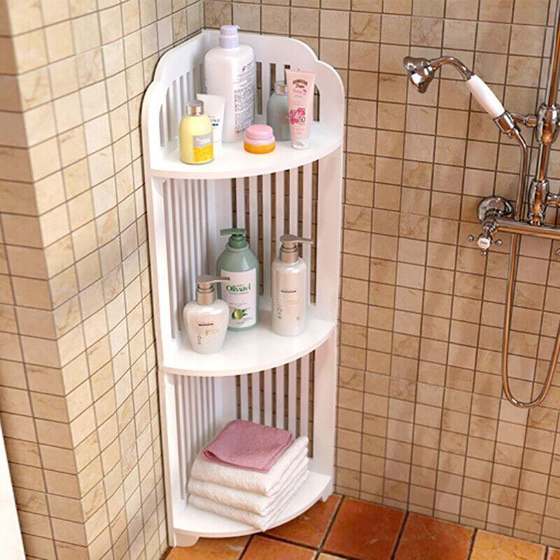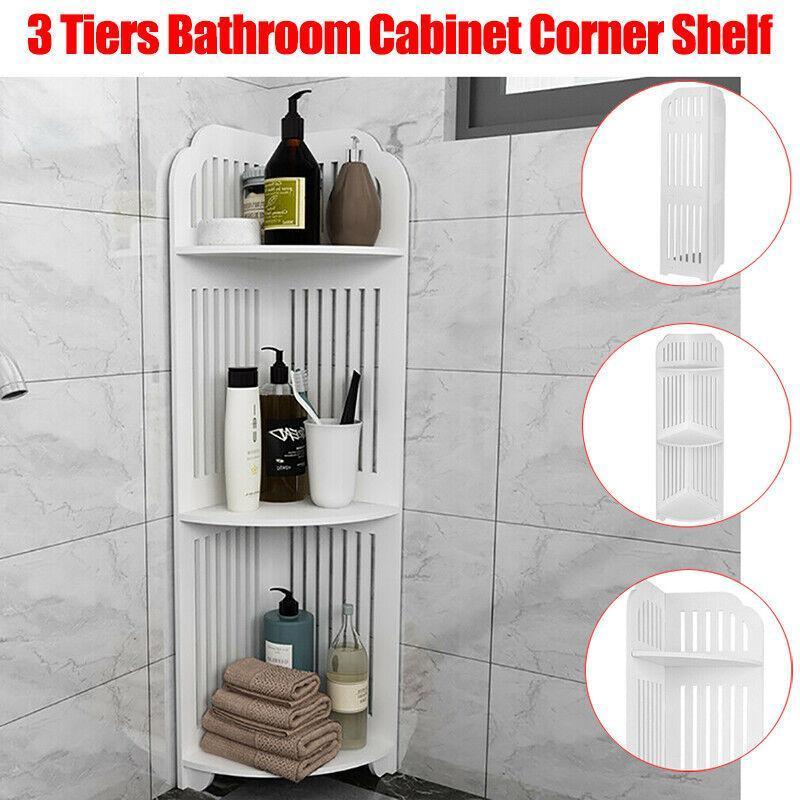 3 Tiers Bathroom Cabinet Corner Shelf Toilet Shower Cupboard Storage Rack
