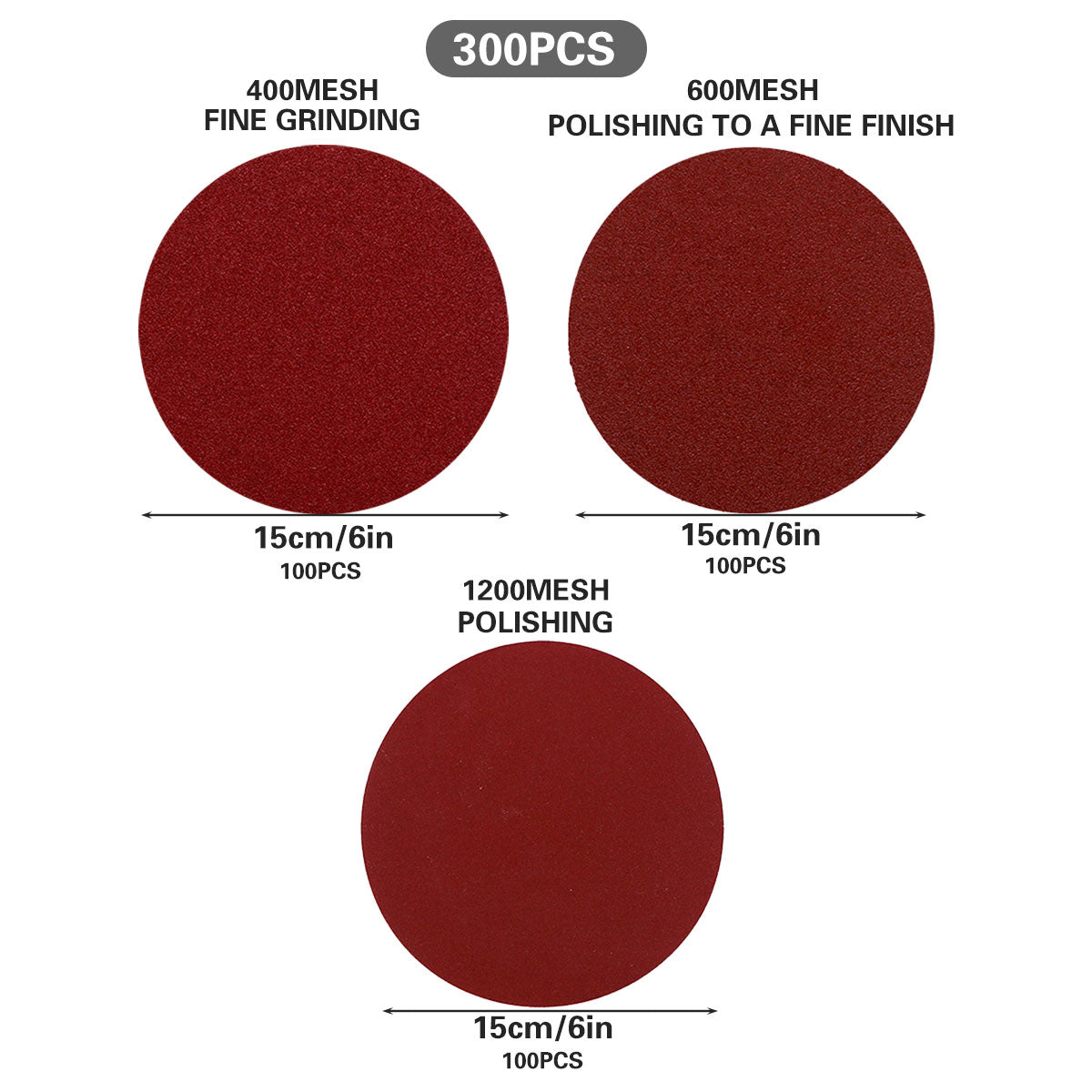 300PCS 6 Inch Sanding Discs For Wood Metal Plastic Grinding Polishing Finishing