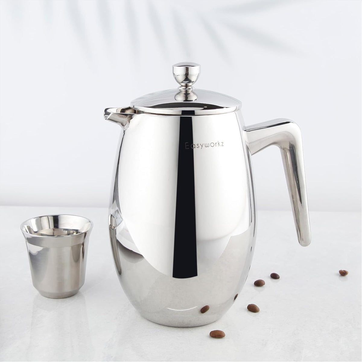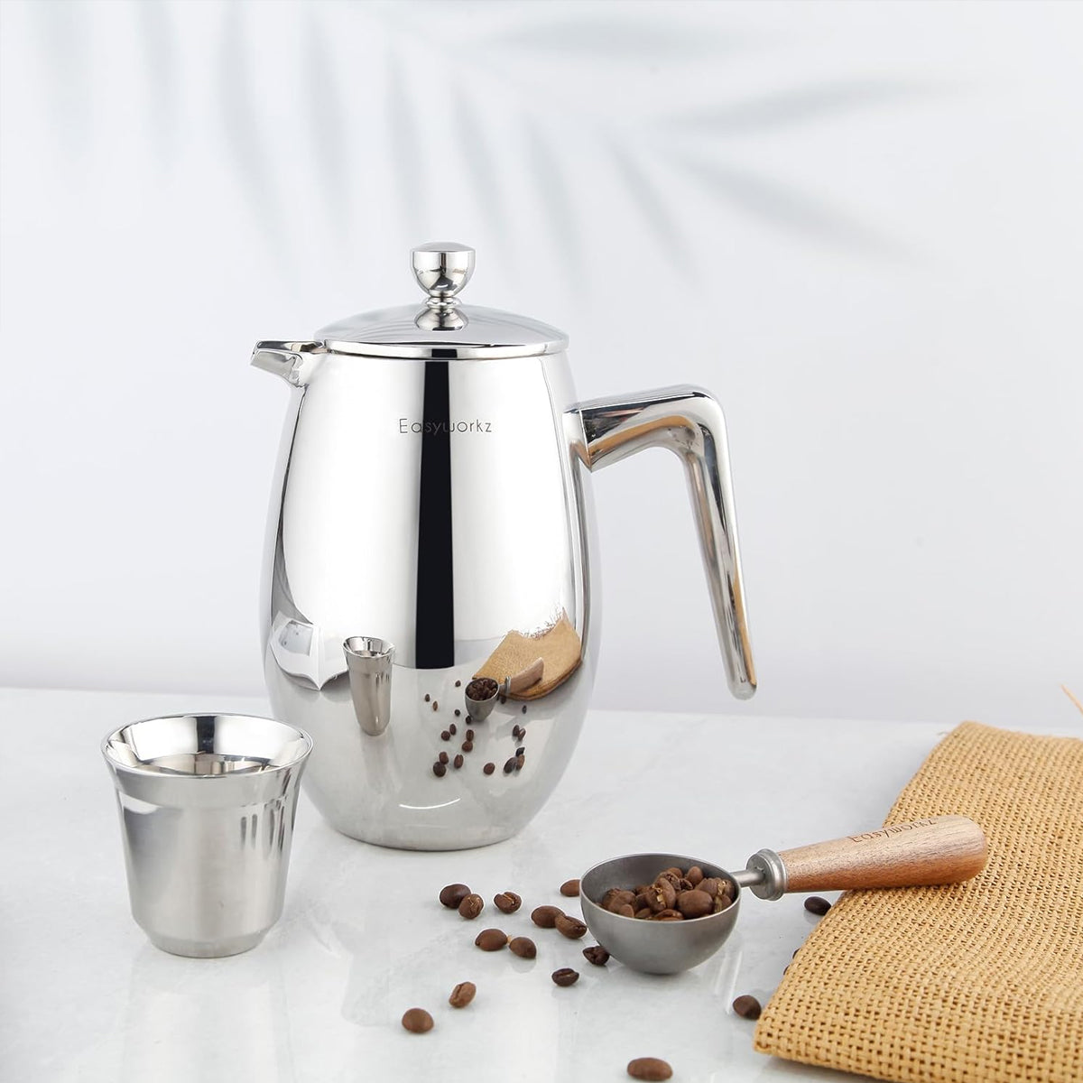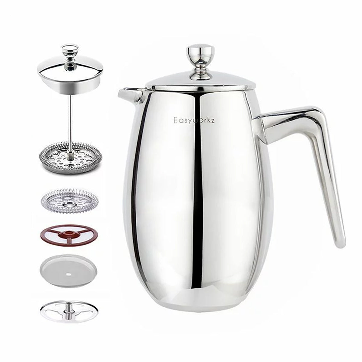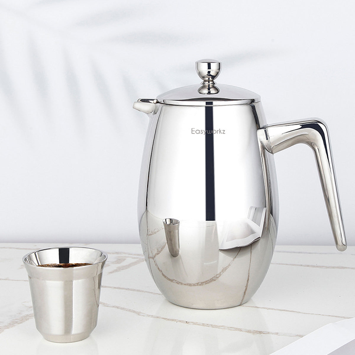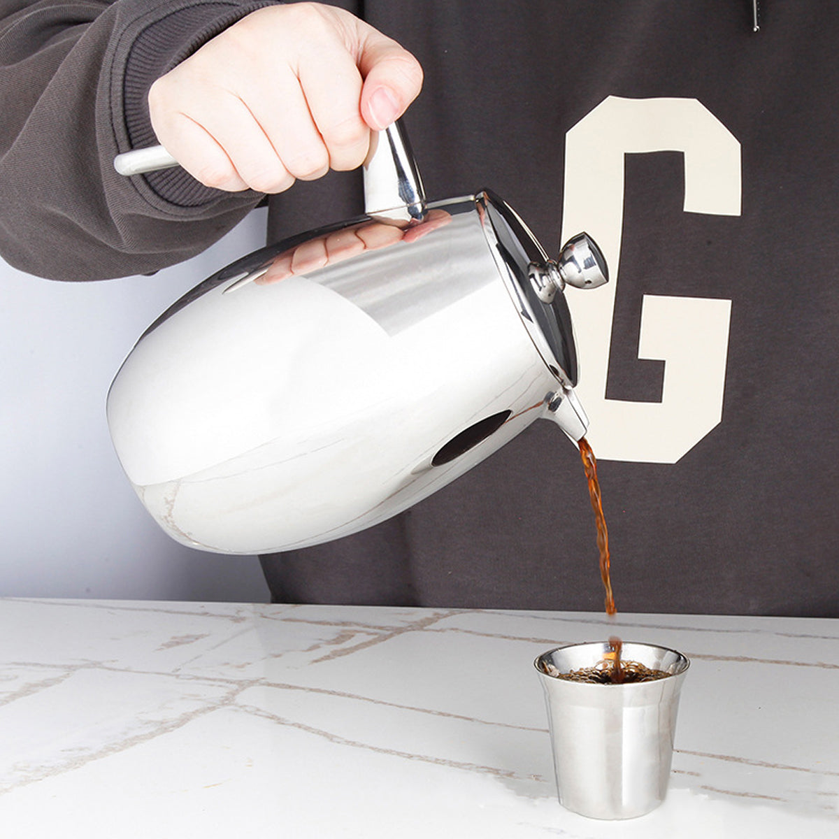 304 Stainless Steel Layer Coffee Pot Press U-Shaped Spout Home Tea Coffee Maker