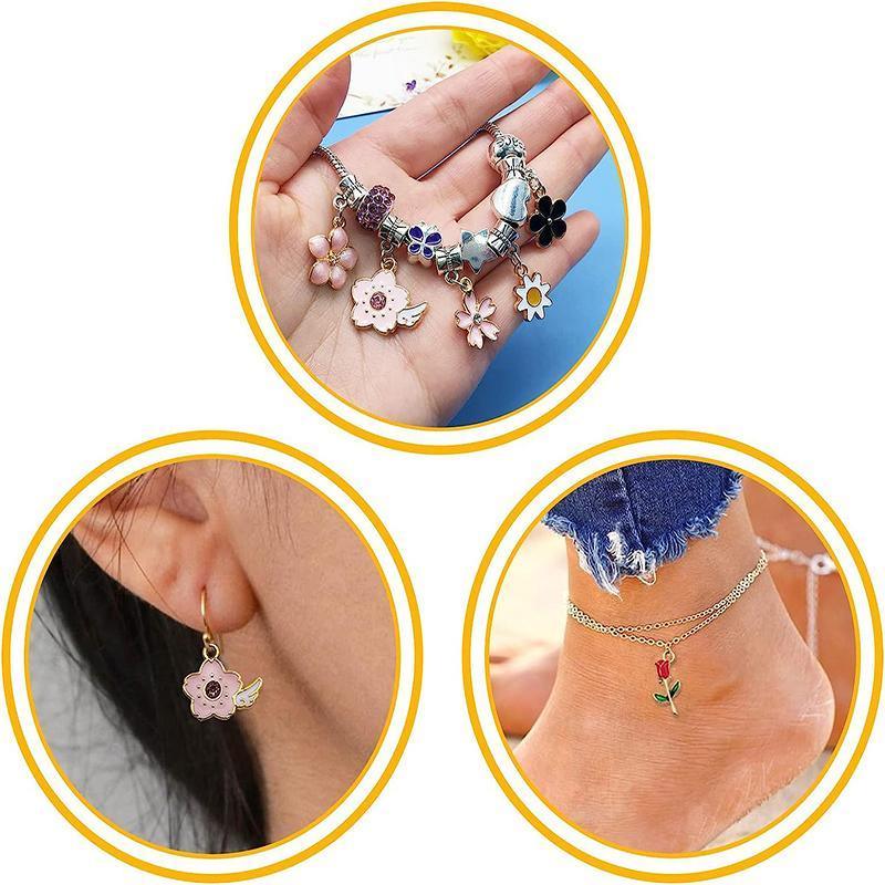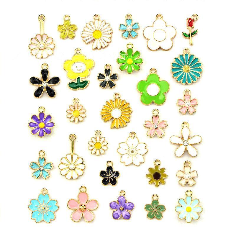 30PCS Assorted Gold Plated Enamel Flower Charms Pendant DIY For Jewelry Making