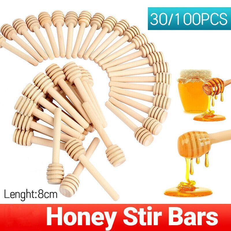 30PCS Mini Wooden Honey Dipper Stick for Honey Jar Dispense Drizzle Party Favors