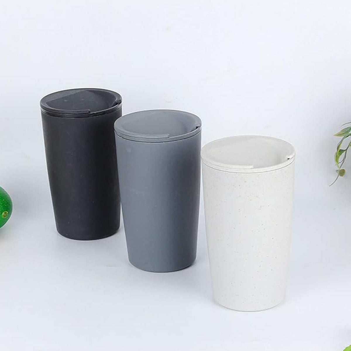 30PCS Straw Plastic Coffee Cups with Lids for Cold Drinks Party Use 3 Colours