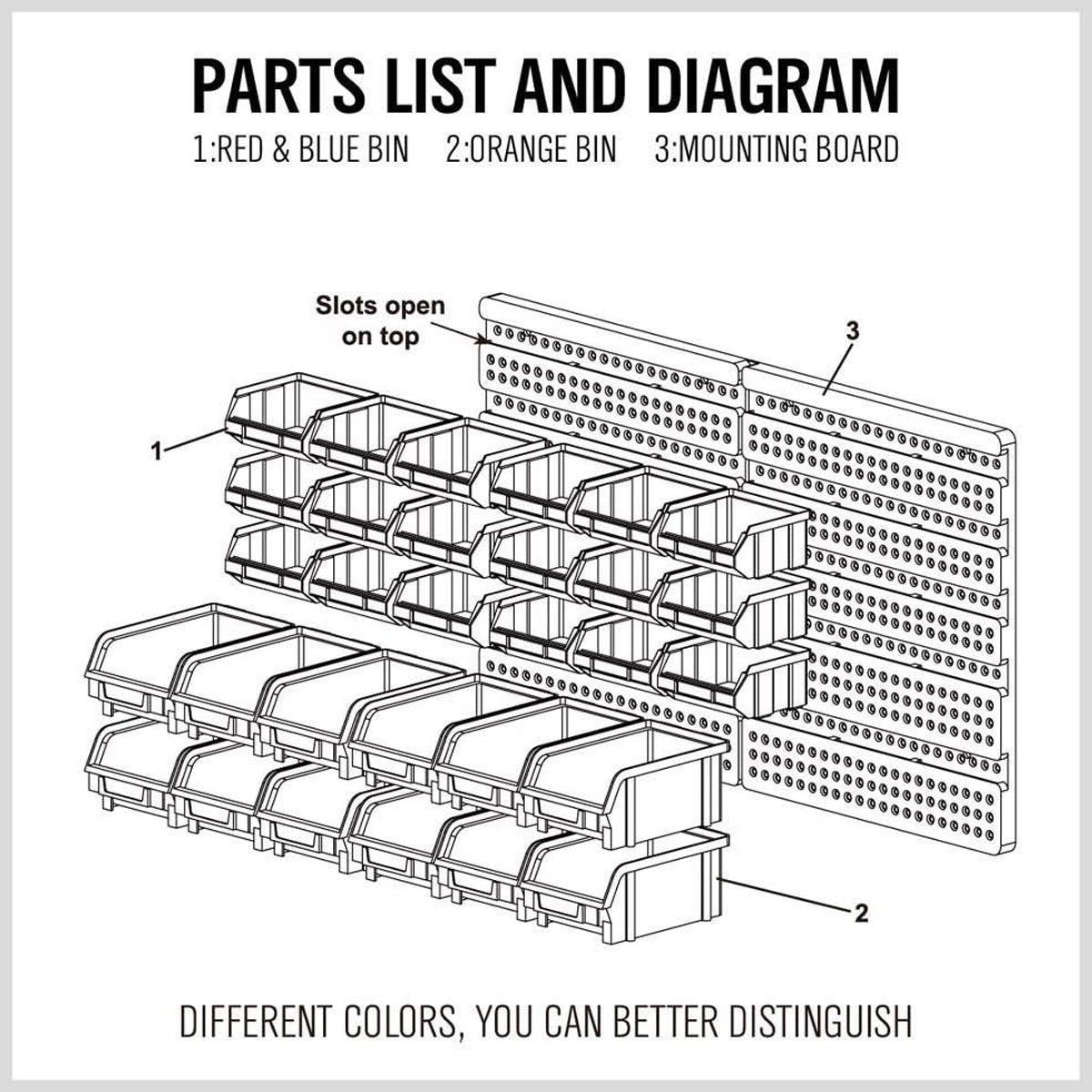 30PCS Wall Mounted Tool Storage Rack Bin Organiser Box for Garage Workshop Use