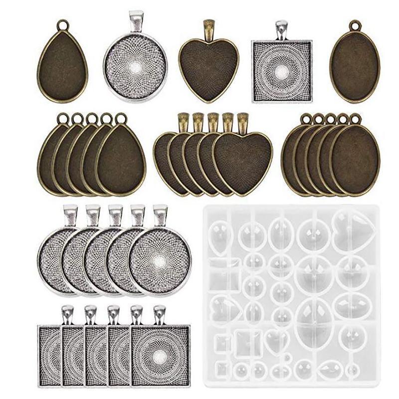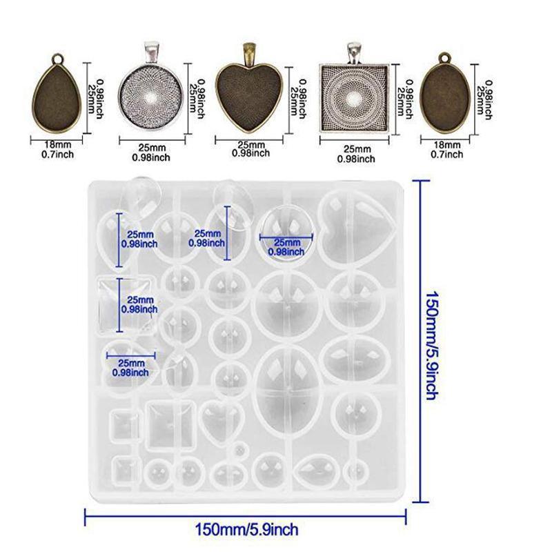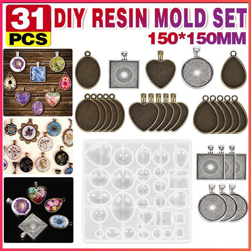 31PCS DIY Silicone Resin Mold Jewelry Casting Epoxy Pendant Tray Mould Craft Kit
