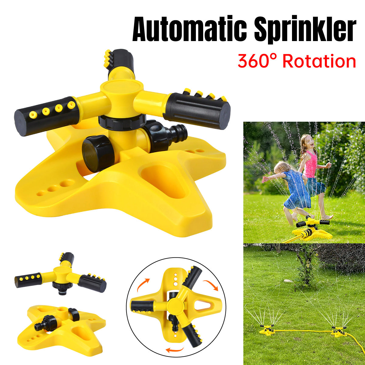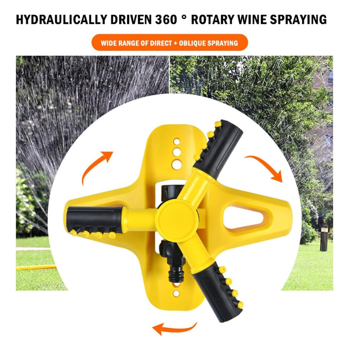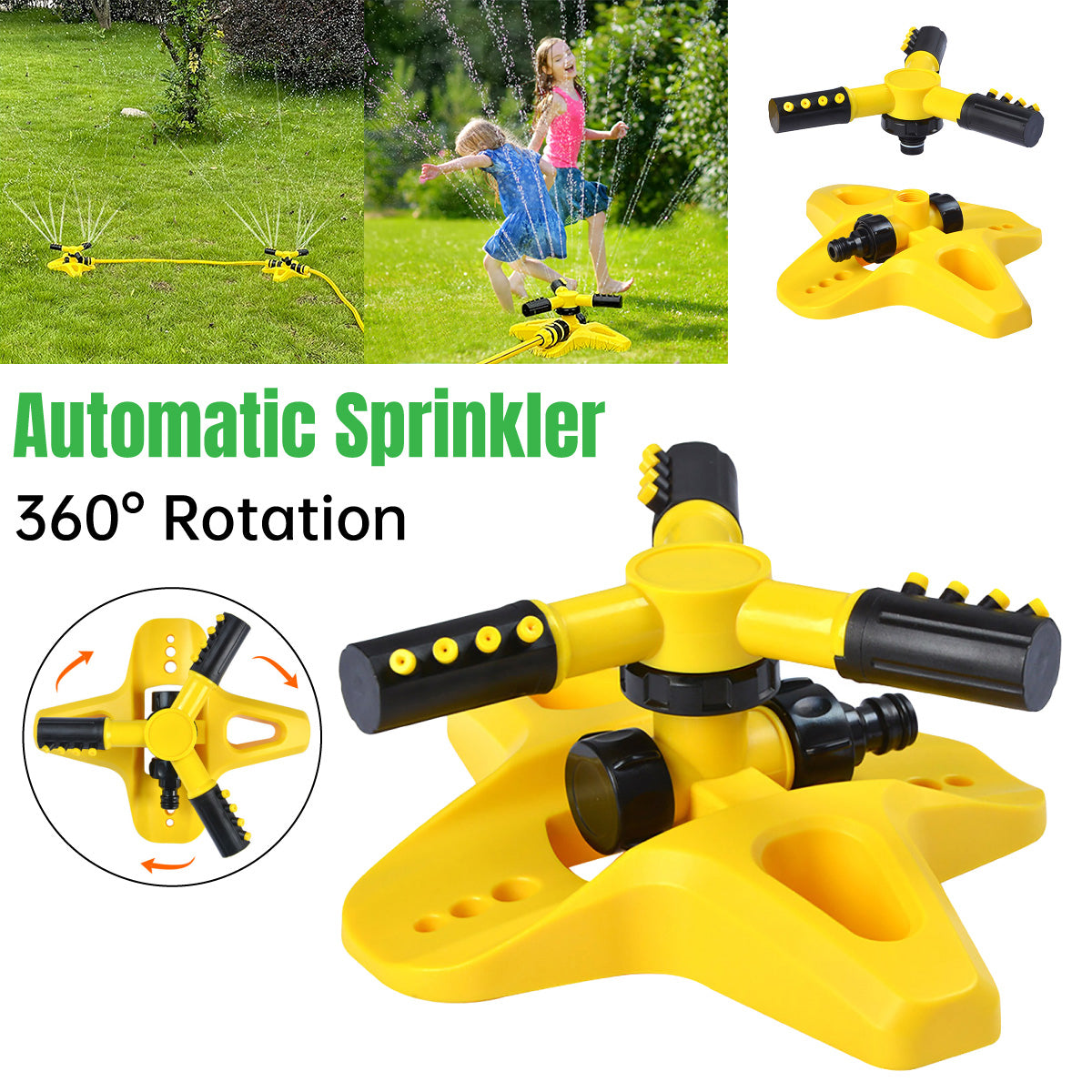 360 Degree Rotating Yellow Sprinkler Automatic Lawn Garden Watering System Villa