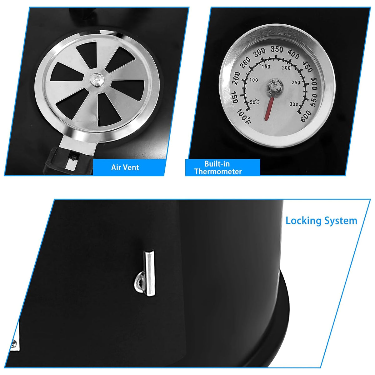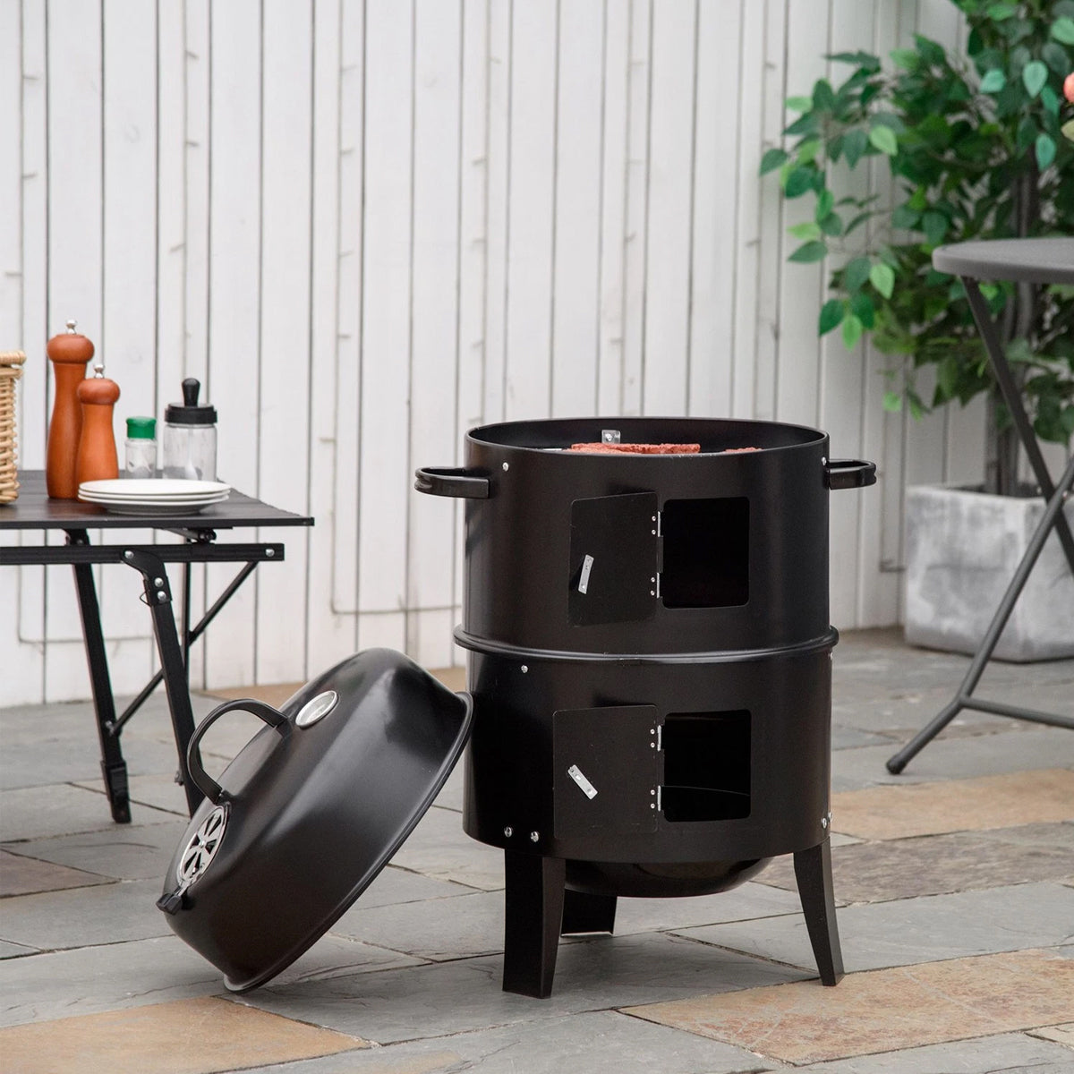 3in1 Portable Charcoal Vertical Smoker BBQ Roaster Grill Steel Water Steamer