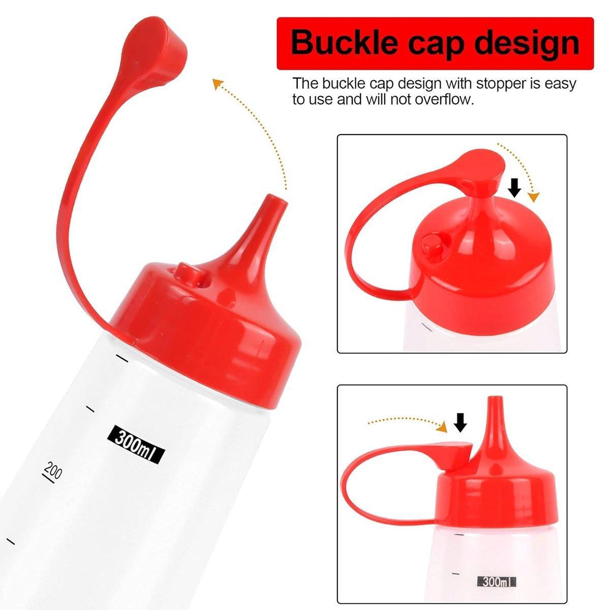 5PCS 300ml Wide Mouth Sauce Squeeze Bottle Large Capacity Plastic Dispenser Set