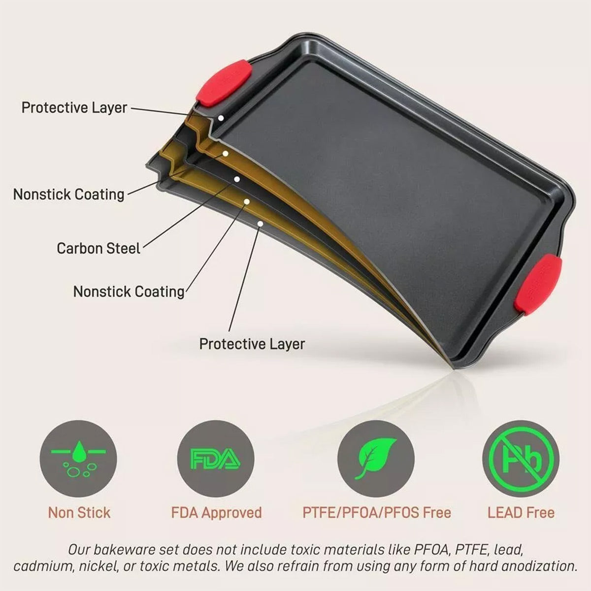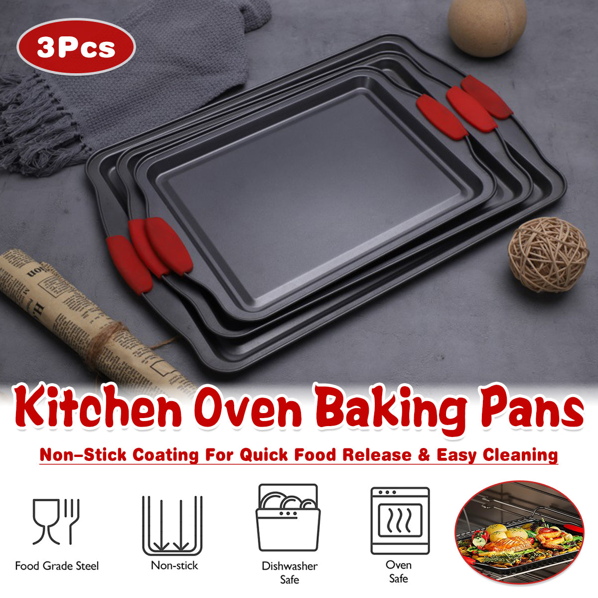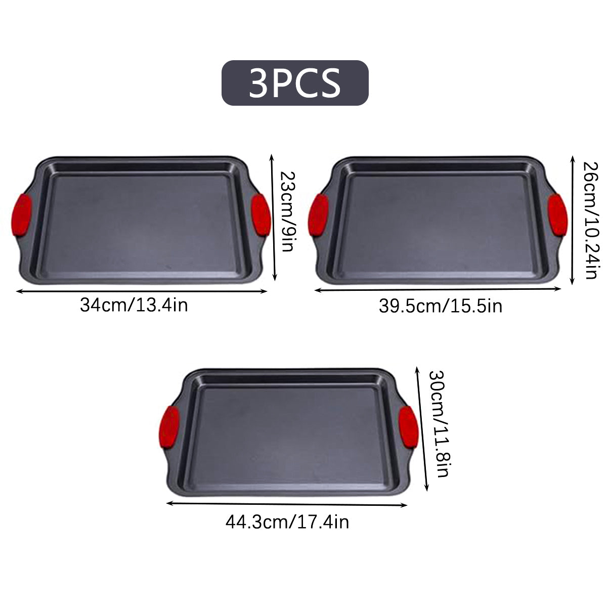 3PCS High Temp Non Stick Home Baking Tray Oven Safe Durable for Cakes Breads