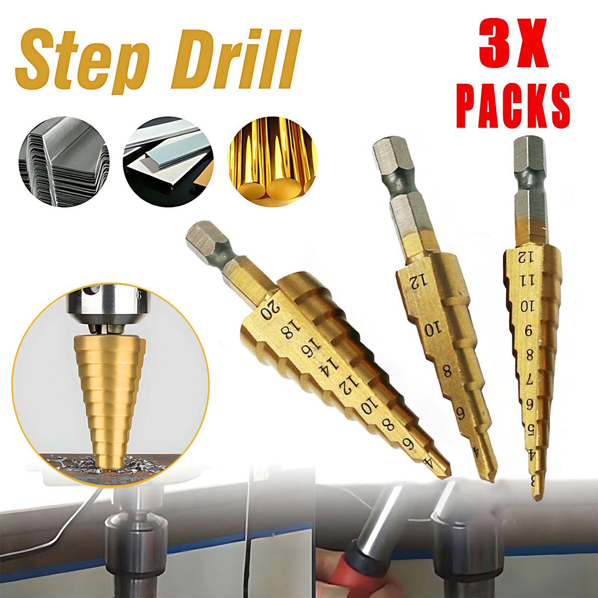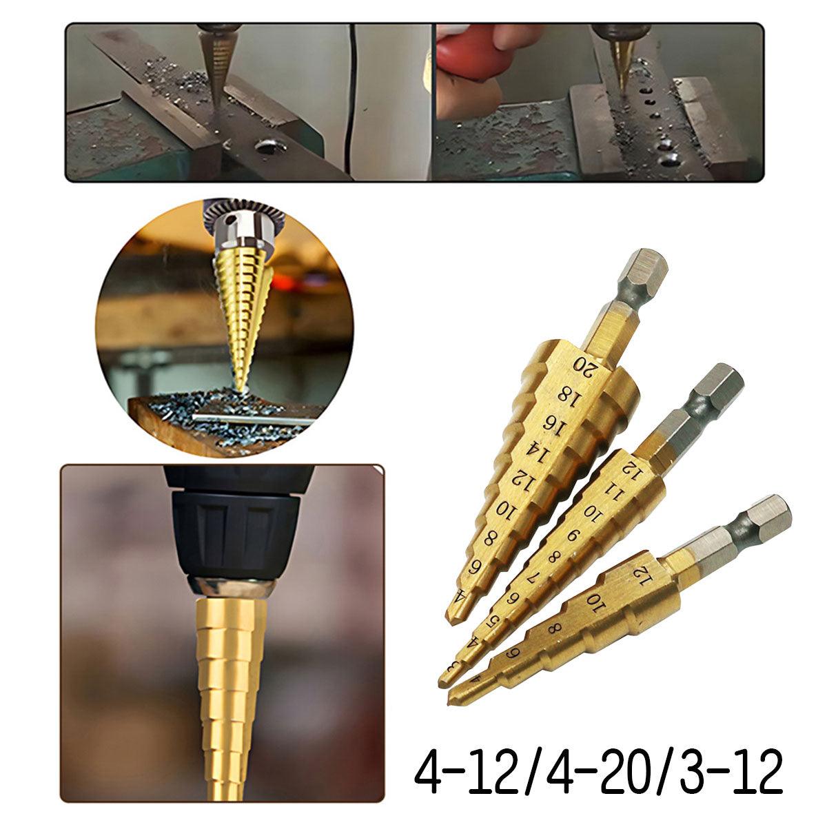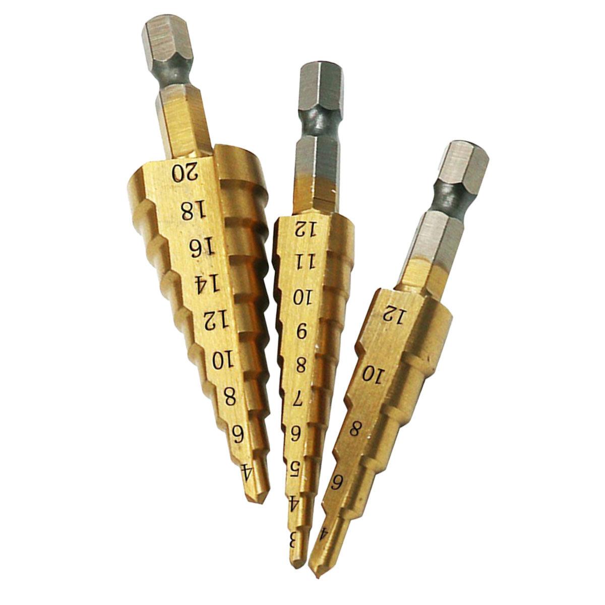 3X Large HSS Steel Step Cone Drill Titanium Bit Set Hole Cutter 4-12/20/32mm