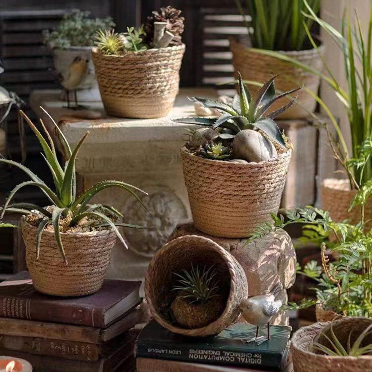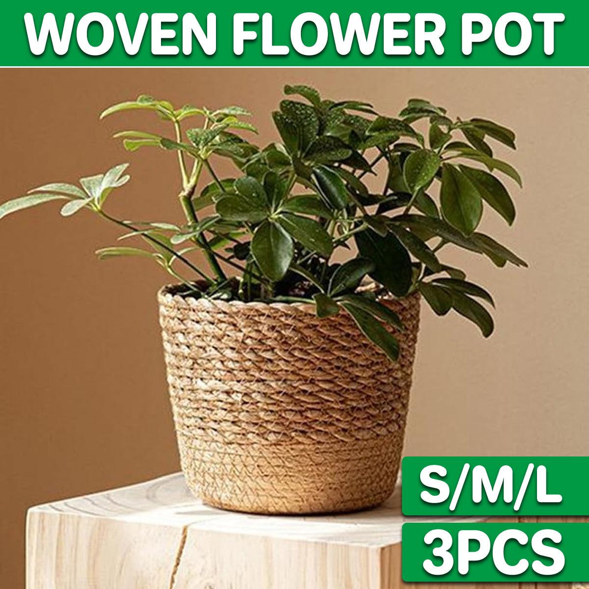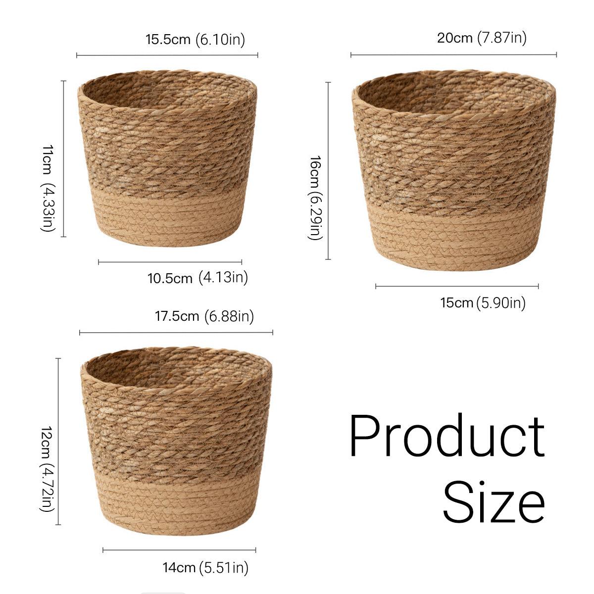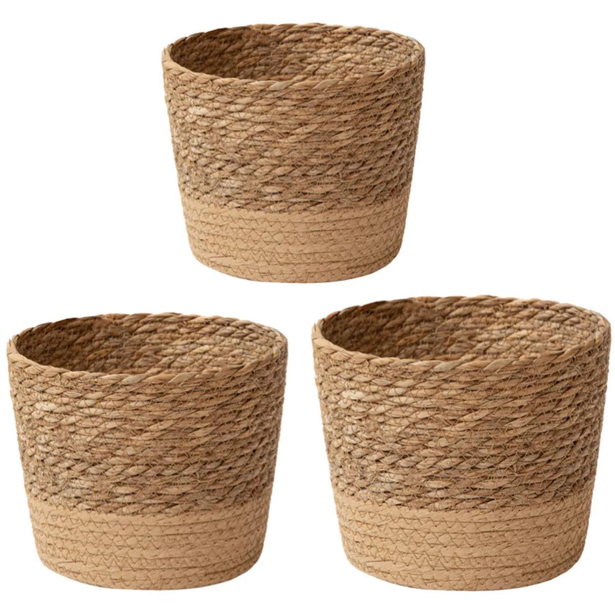 3pcs Natural Woven Basket Planters Garden Flower Pots for Home Living Decor