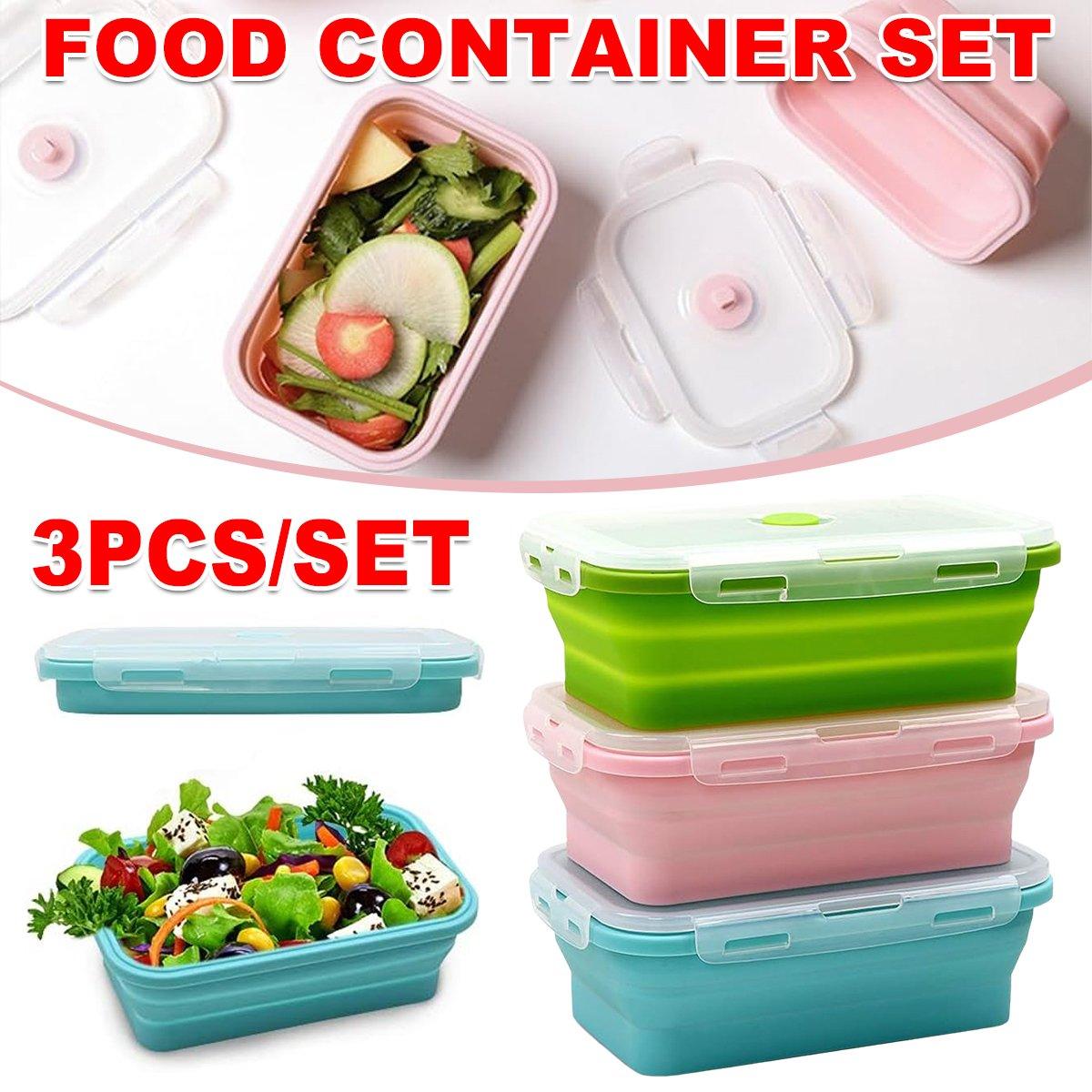 3pcs Portable Folding Bento Lunch Boxes Fresh Keeping Box for Food Storage