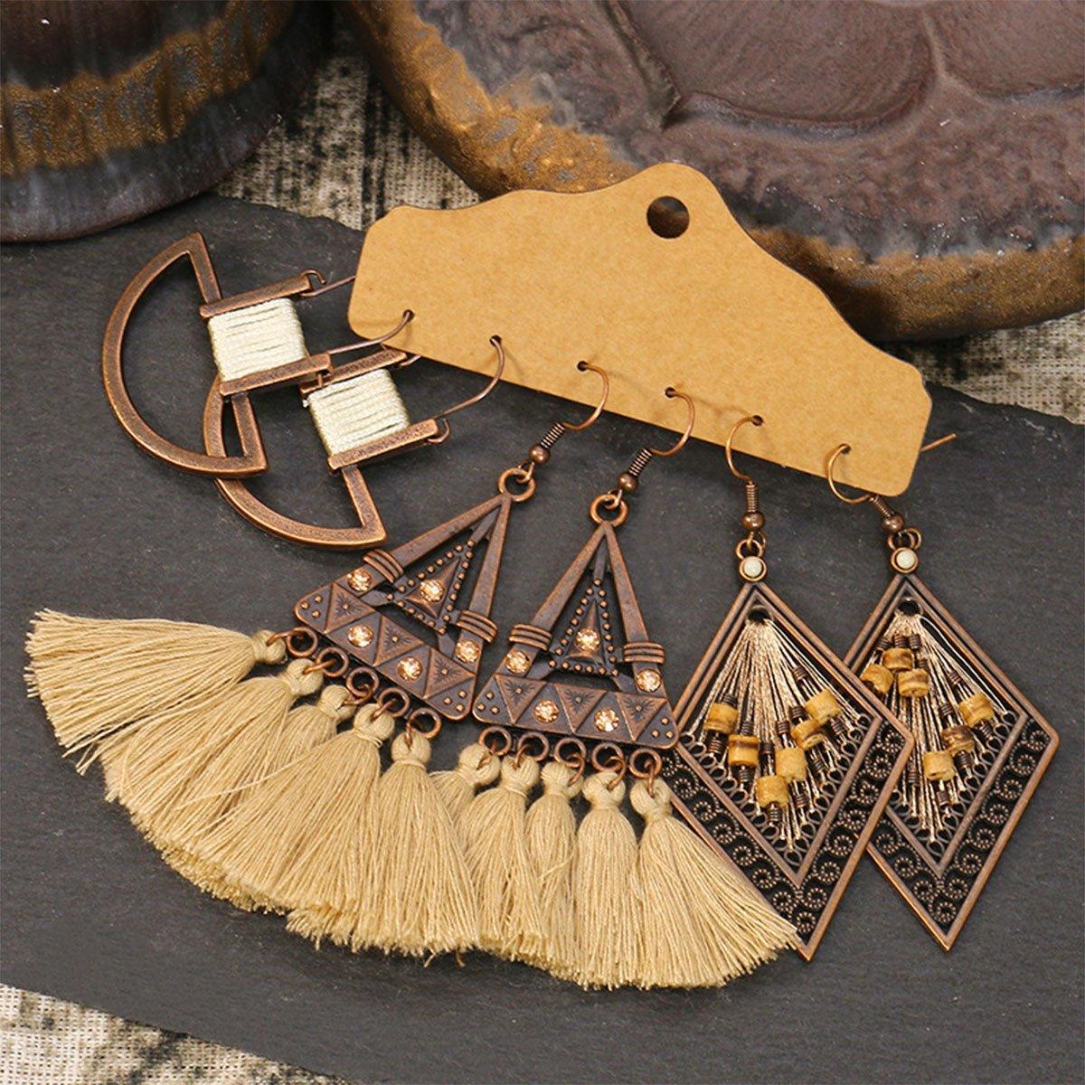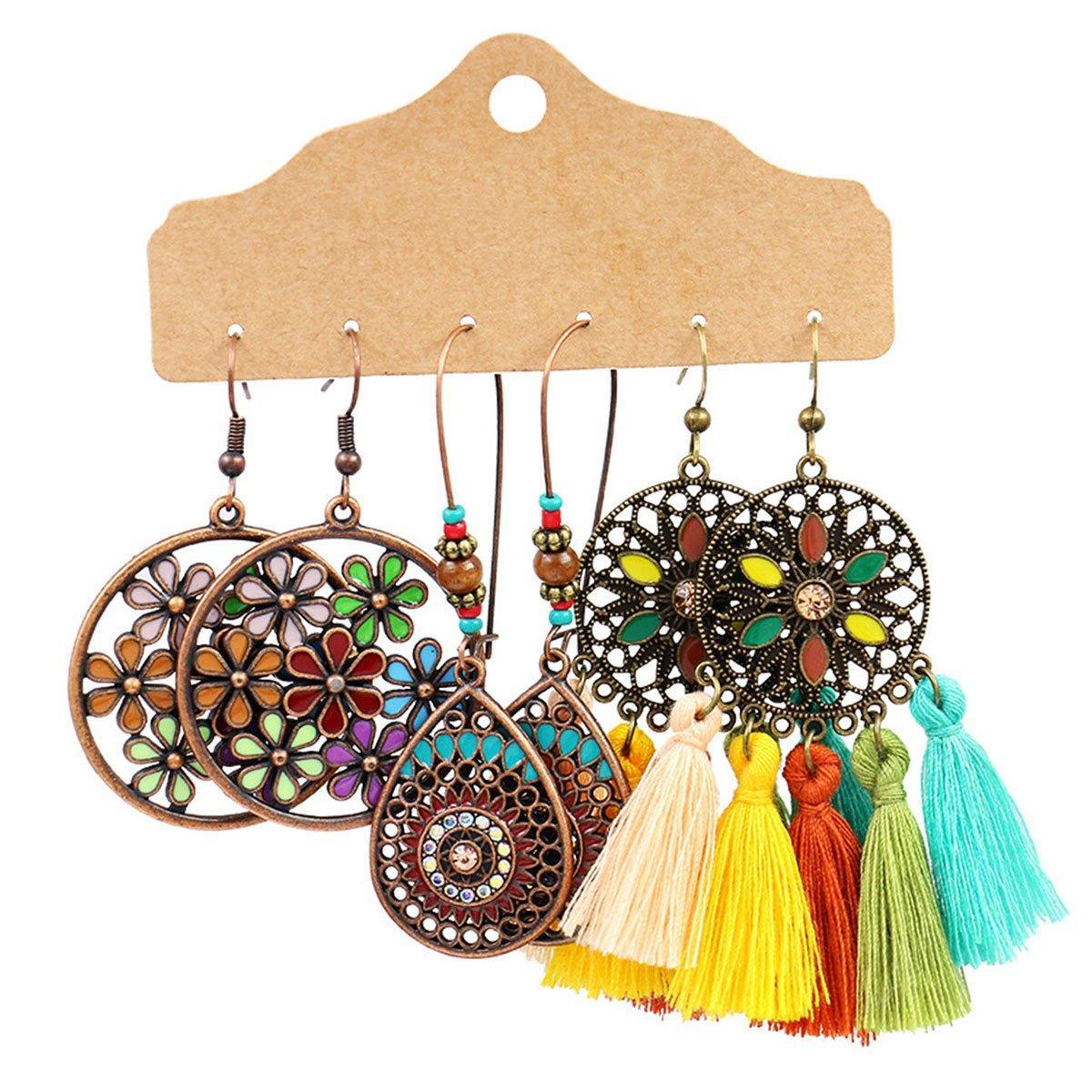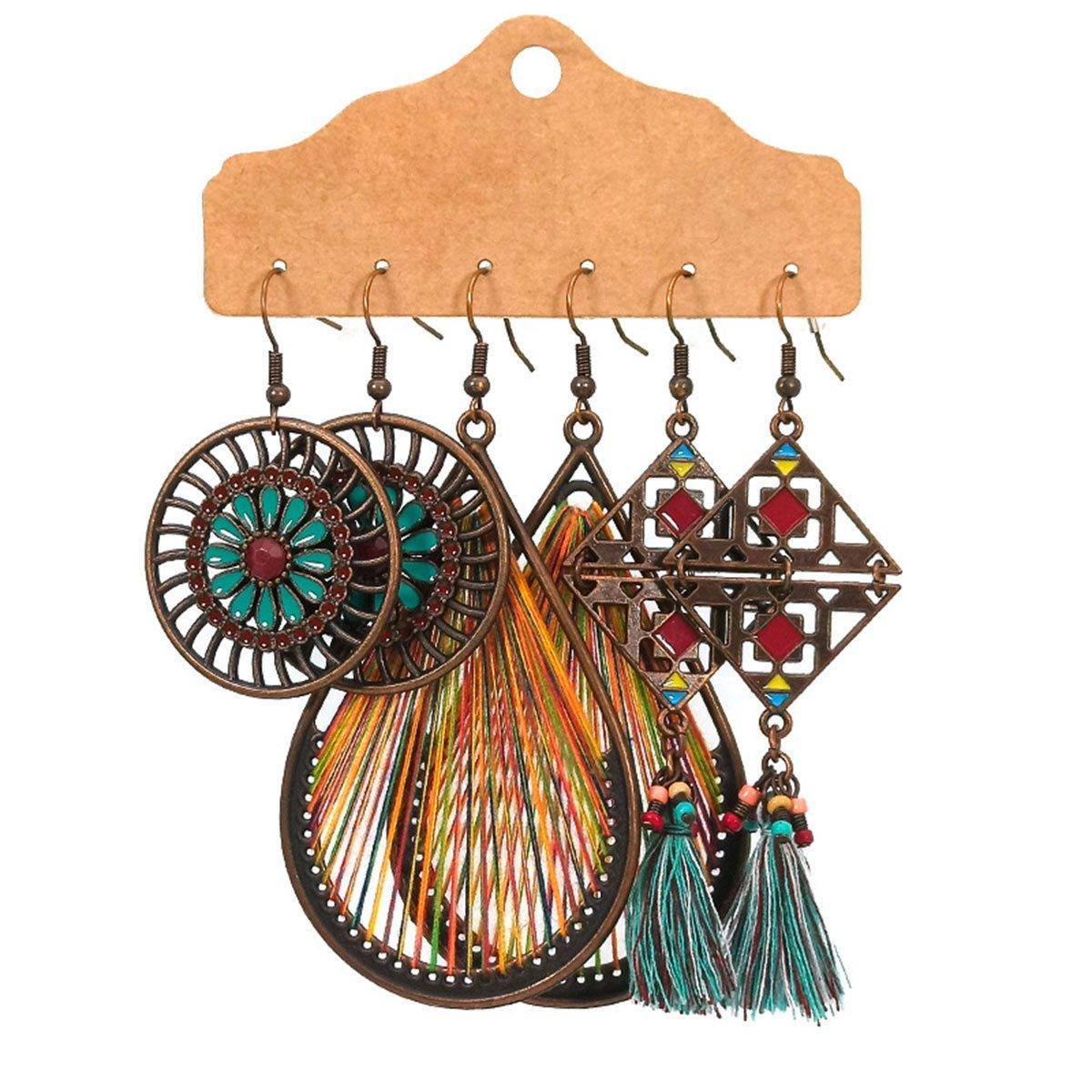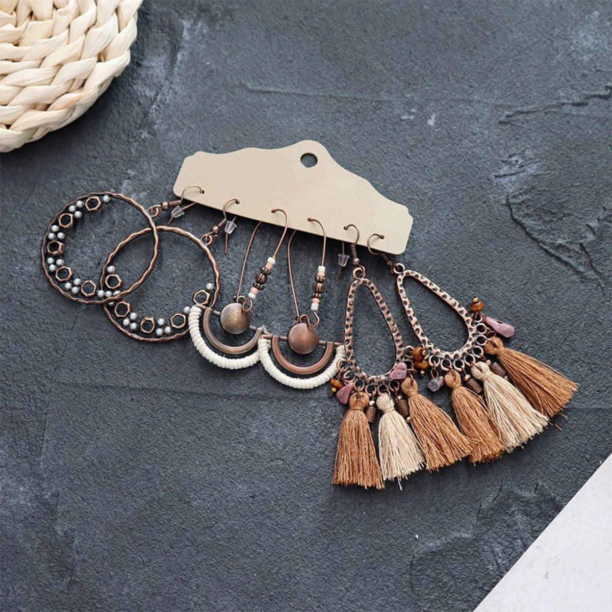 3Set Pairs Bohemian Style Earrings Retro Ethnic Fashionable Romantic Su Earrings