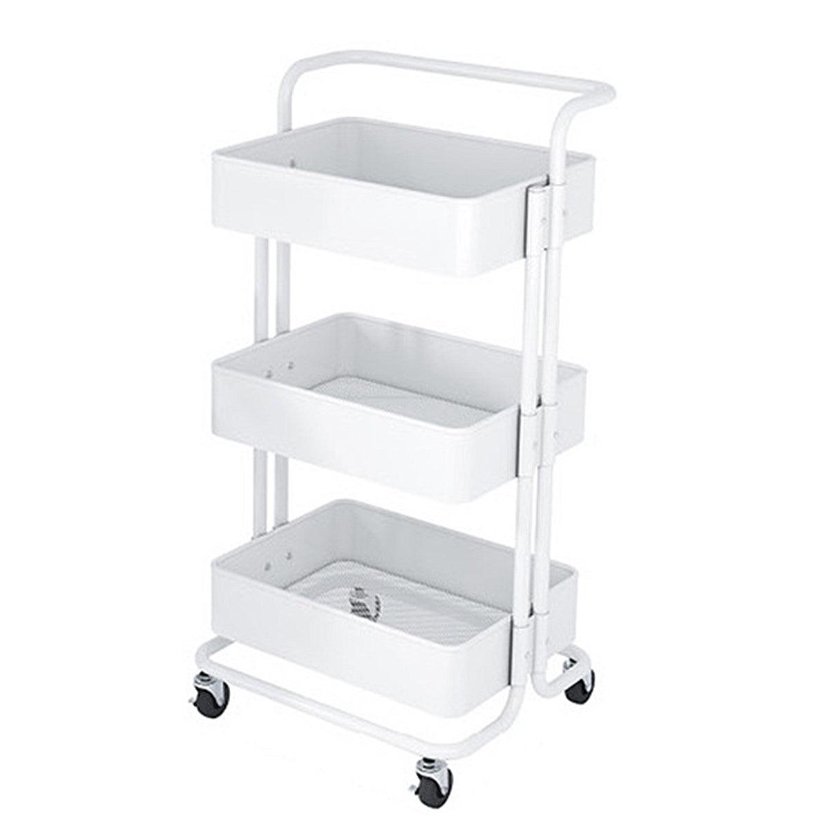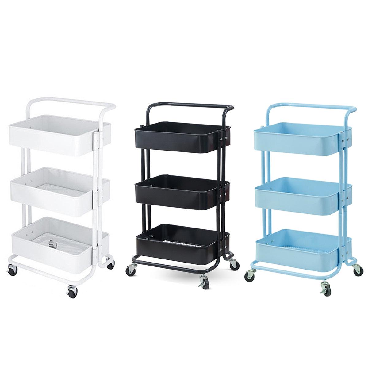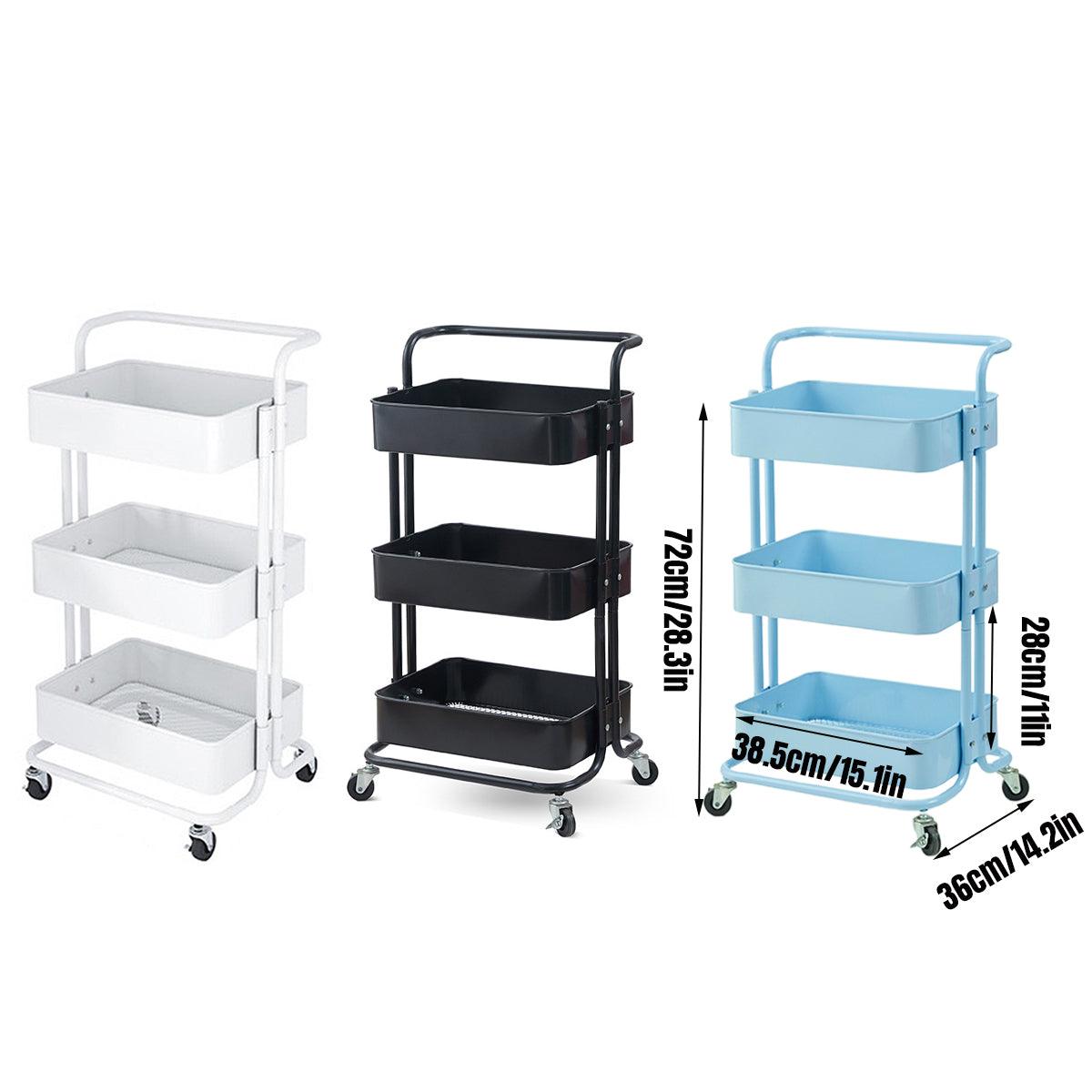 3Tier Trolley Shelf Organiser with Wheels Removable Storage Cart for Home Office