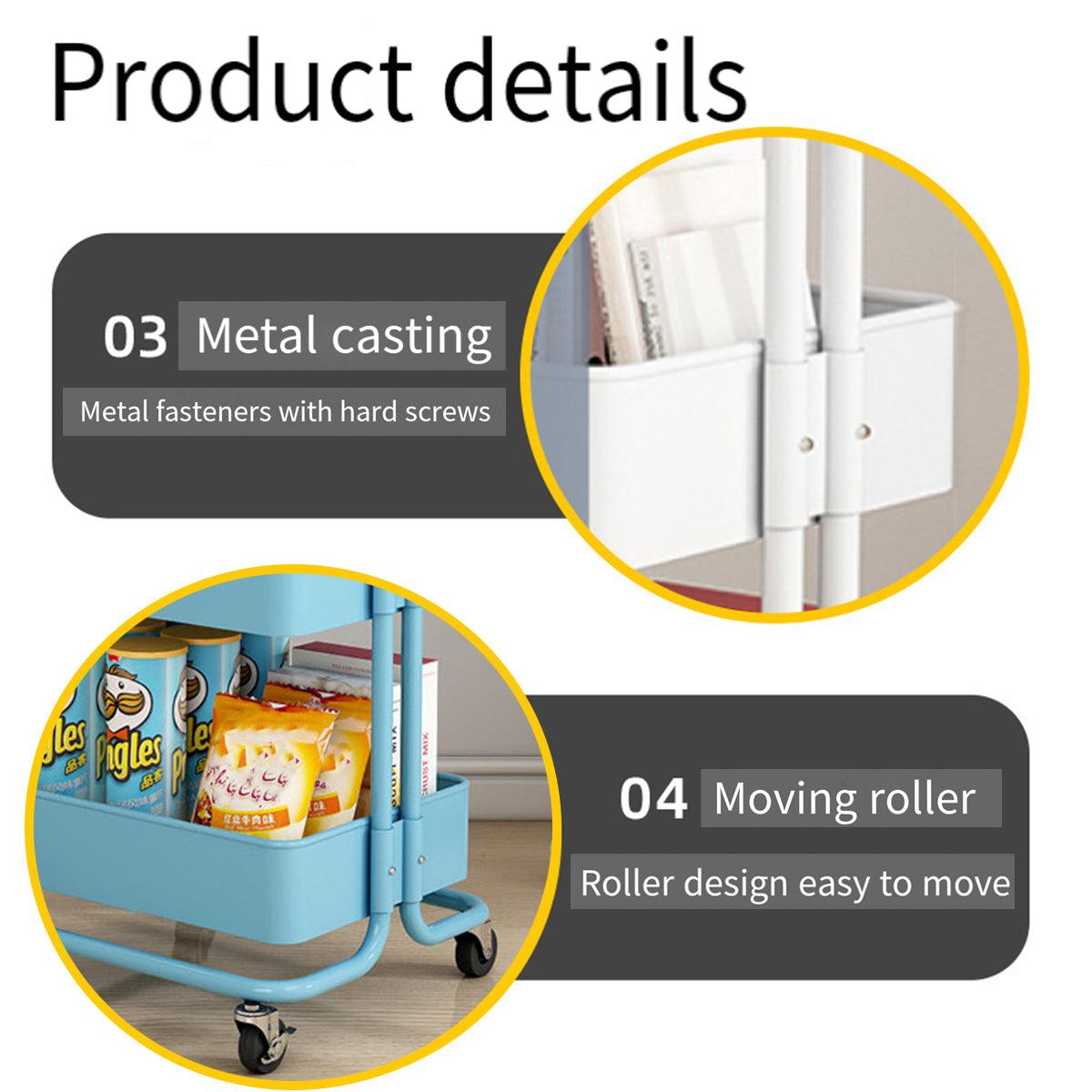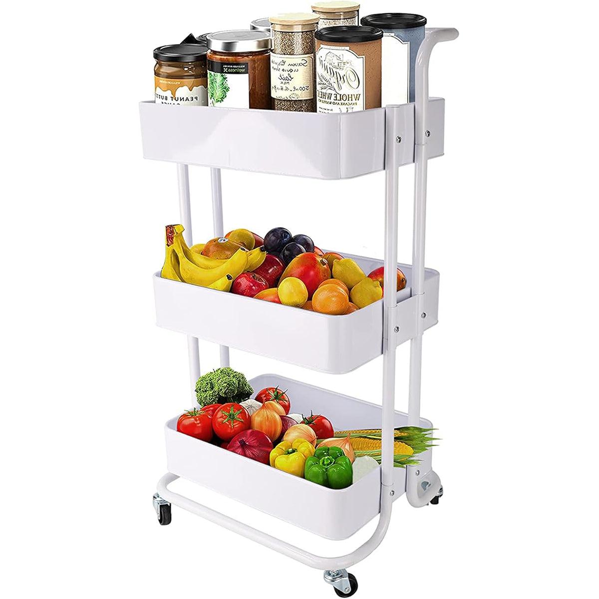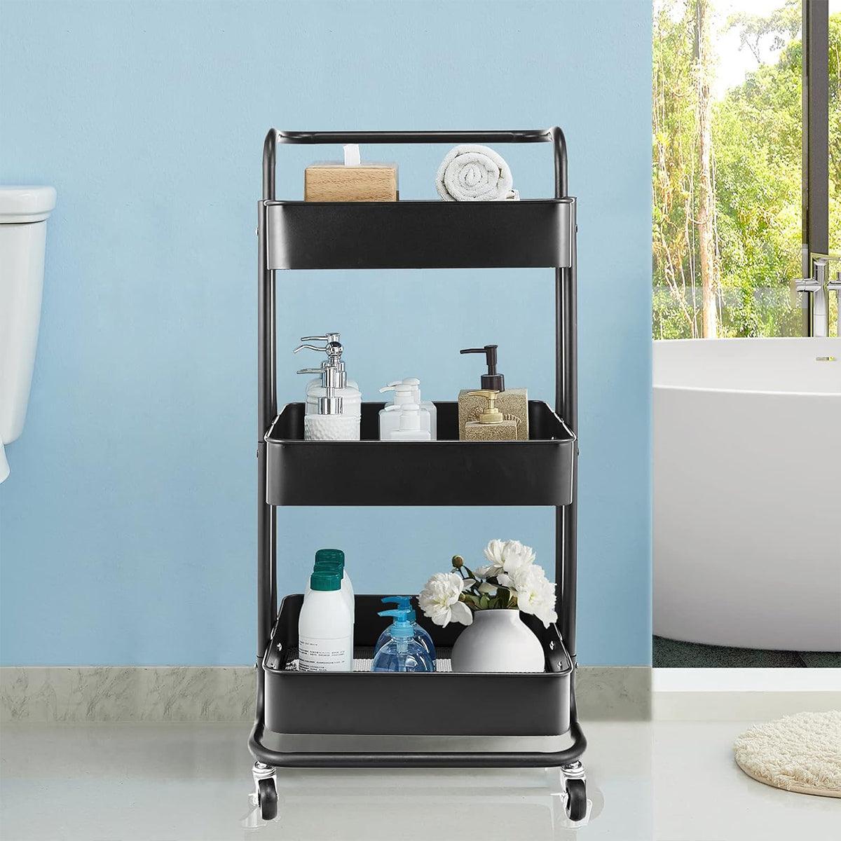 3Tier Trolley Shelf Organiser with Wheels Removable Storage Cart for Home Office