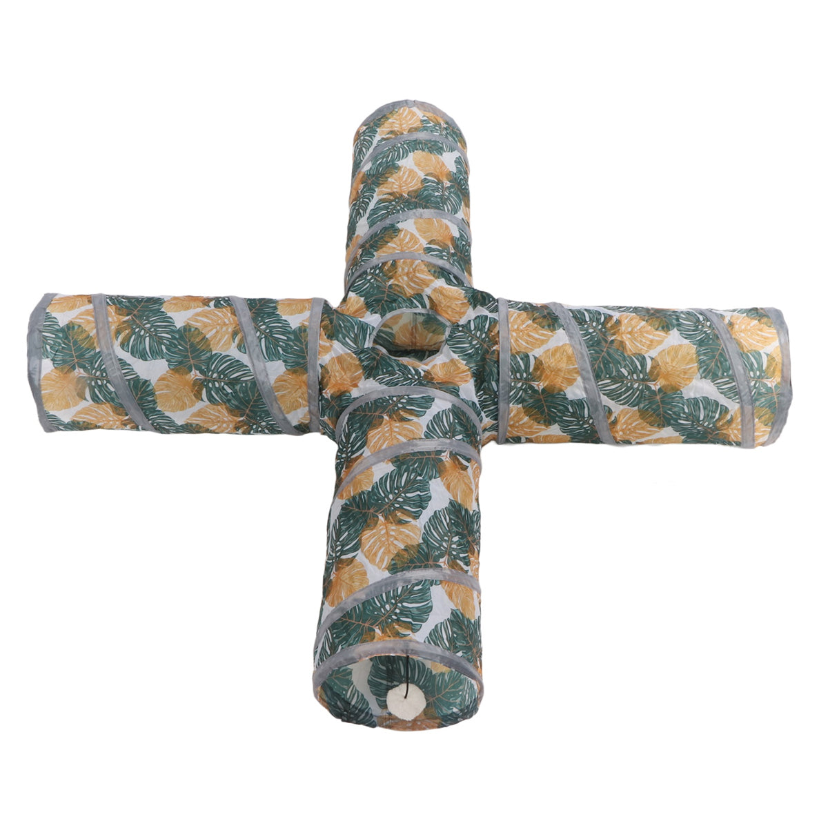 4-Channel Foldable Cat Tunnel Printed Pet Cat Runway For Kitten Chase Play Toy