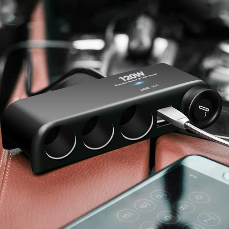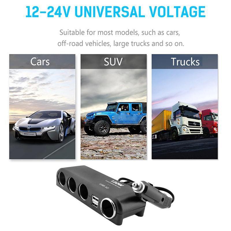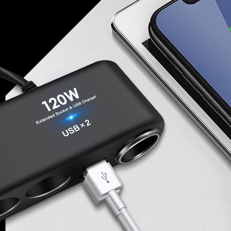 4 Way Car Cigarette Lighter Splitter with Dual USB Charger Adapter 12V 24V 120W