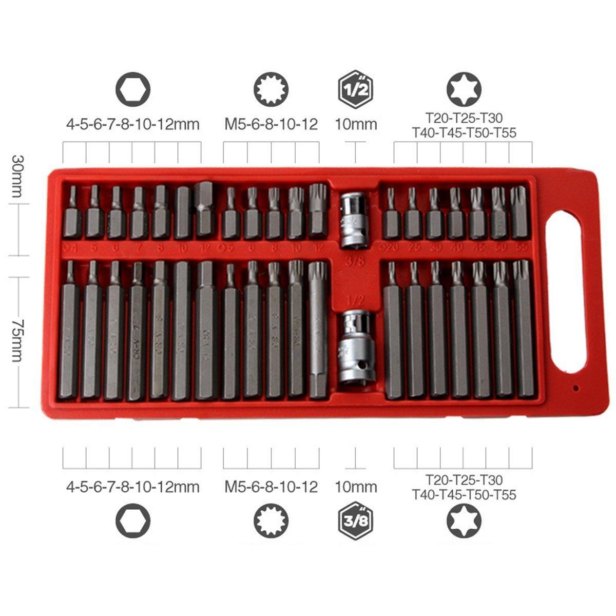 40pc Allen Hex Key Set Socket Bit 3/8 1/2 Drive Long Deep Torx Star Spline