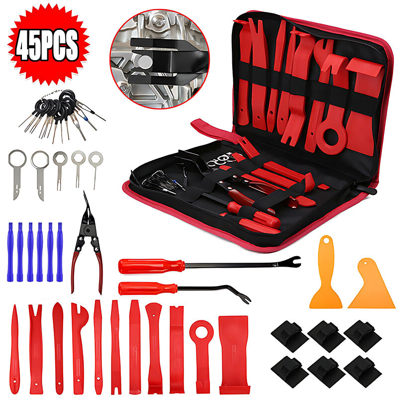 Unlock the full potential of your automotive DIY projects with our Car Trim Removal Tool Kit. Designed for professionals and enthusiasts alike, this comprehensive 45-piece set is your go-to solution for effortlessly removing and installing automotive, marine, furniture, or aircraft trim. Whether it's door panels, moldings, window trims, clips, fasteners, emblems, or radios, our kit is equipped to handle it all with precision and ease.
