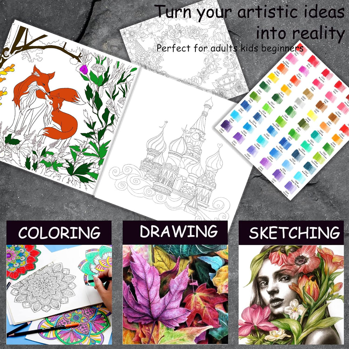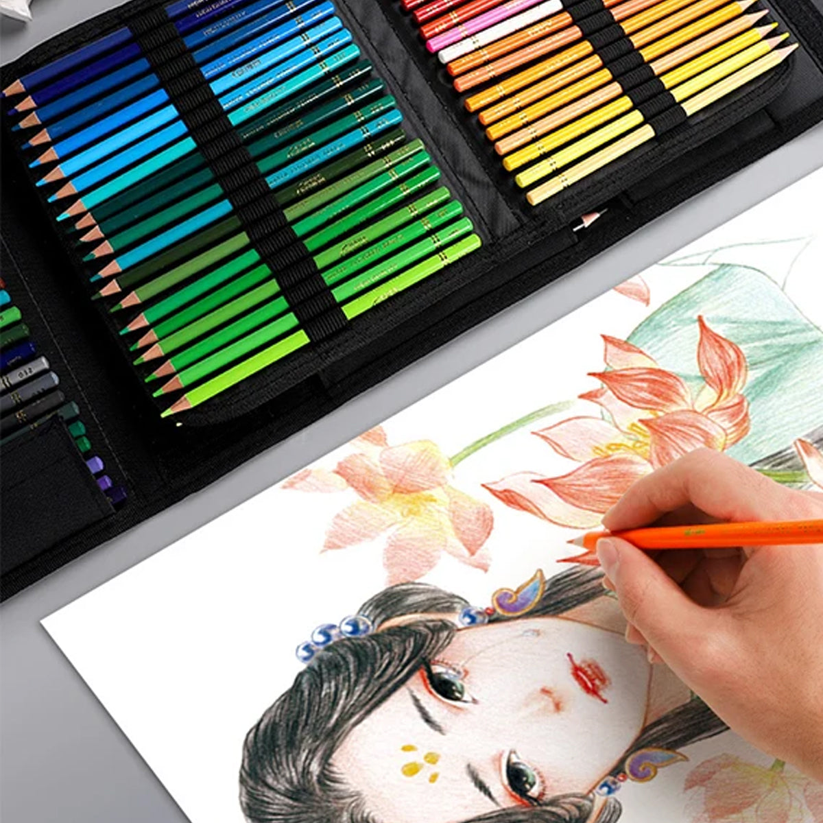 48 or 200 Colours Oil-Based Coloured Pencils Set with Case Non-Toxic