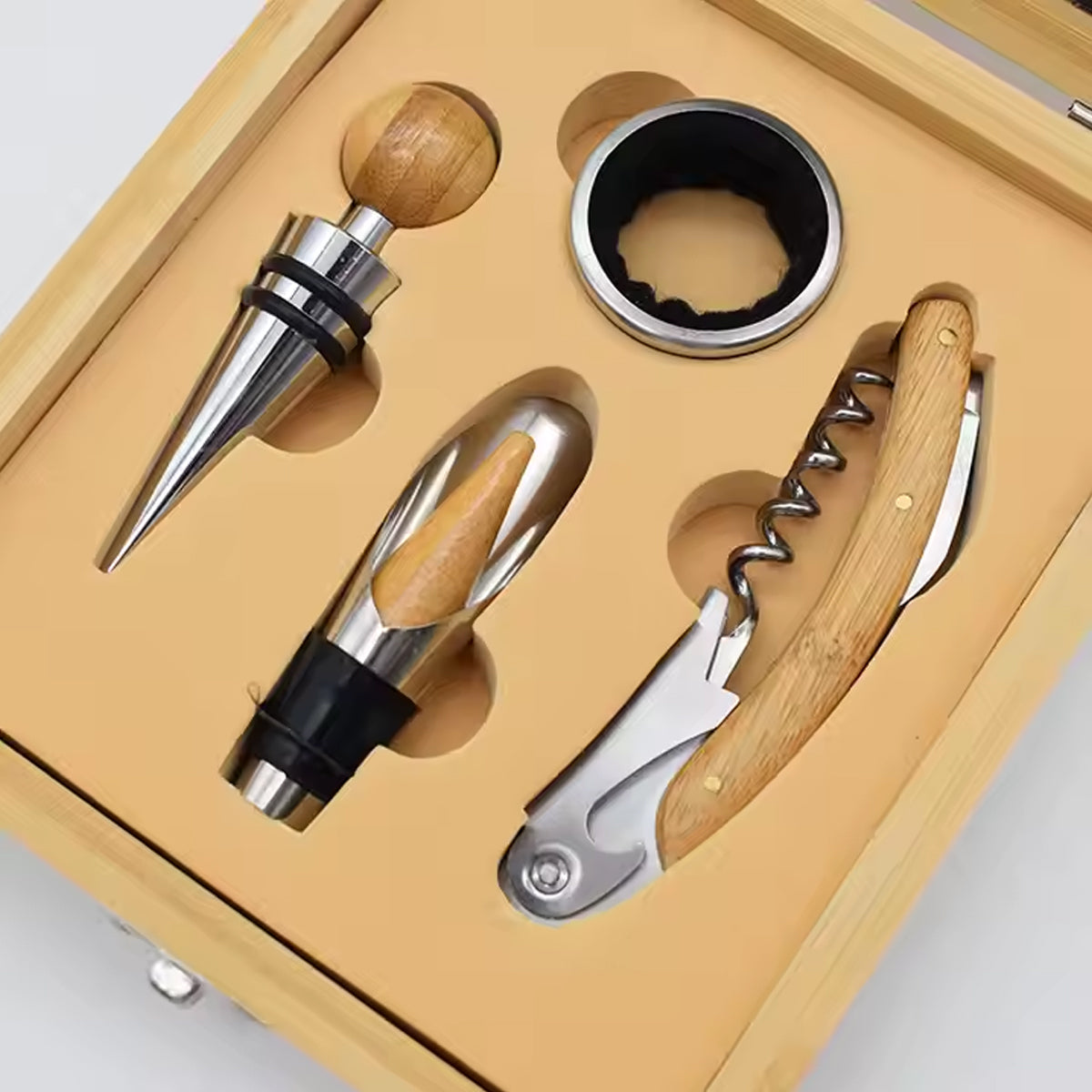 4in1 High-End Bamboo Box Packaged Multi-Functional Stainless Steel Bottle Opener