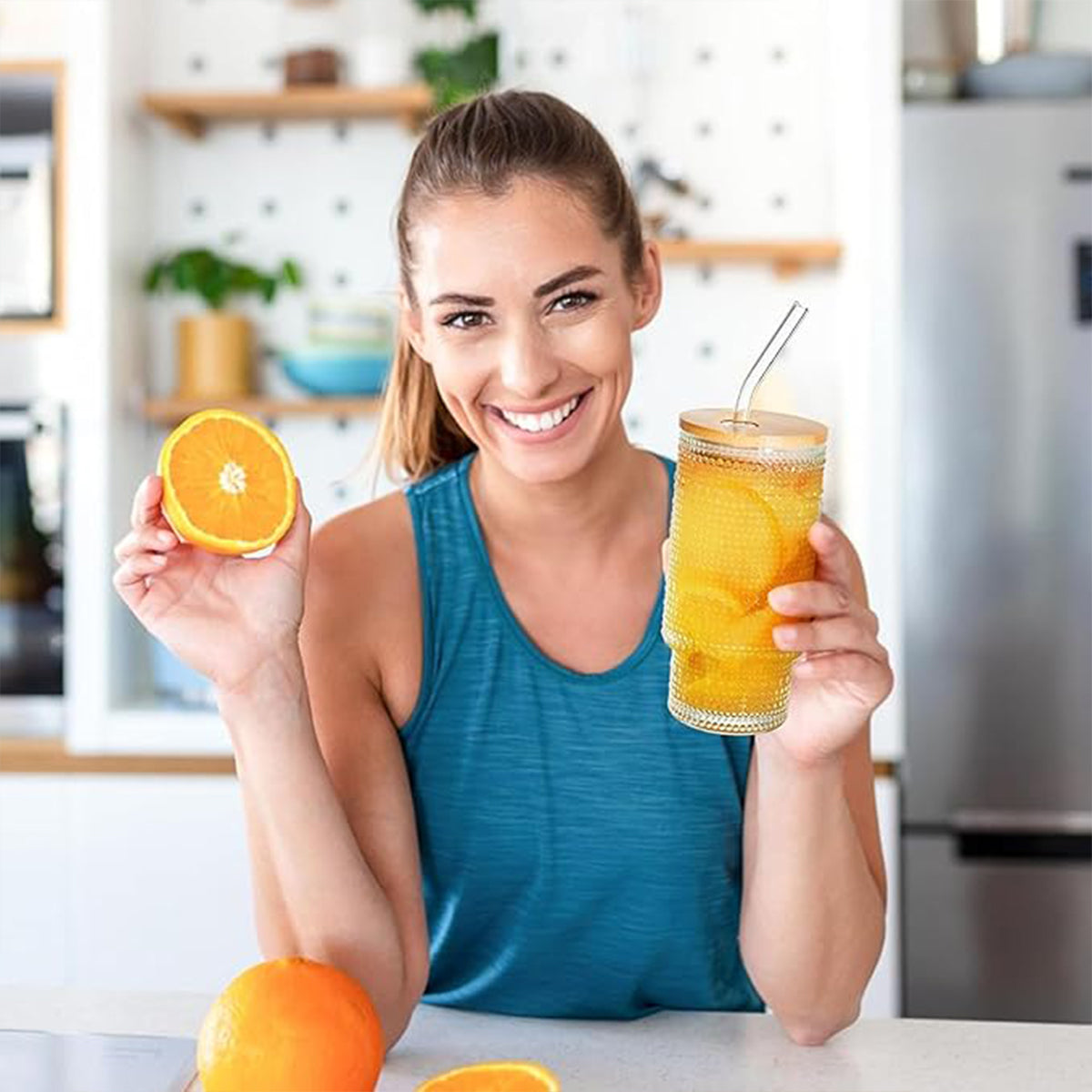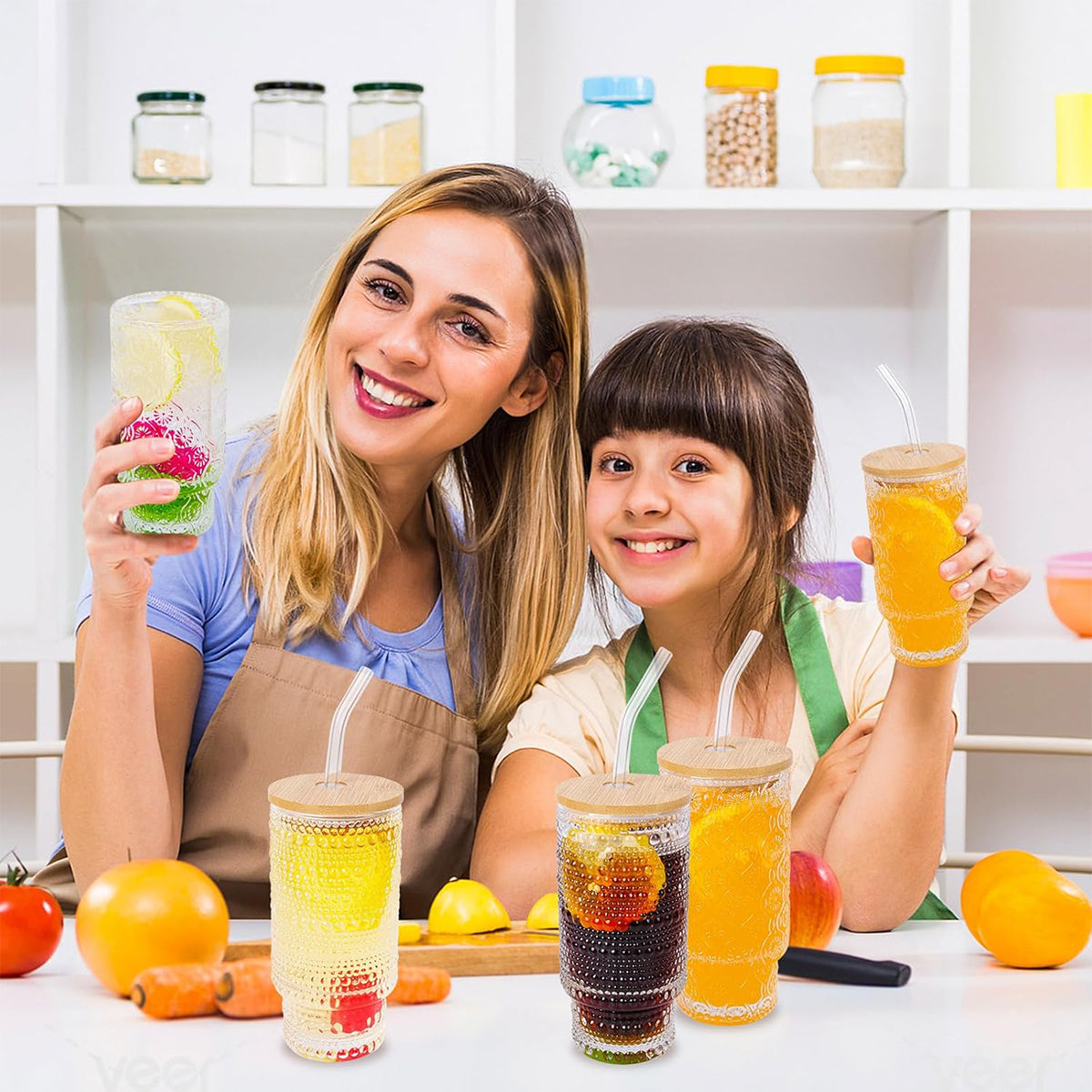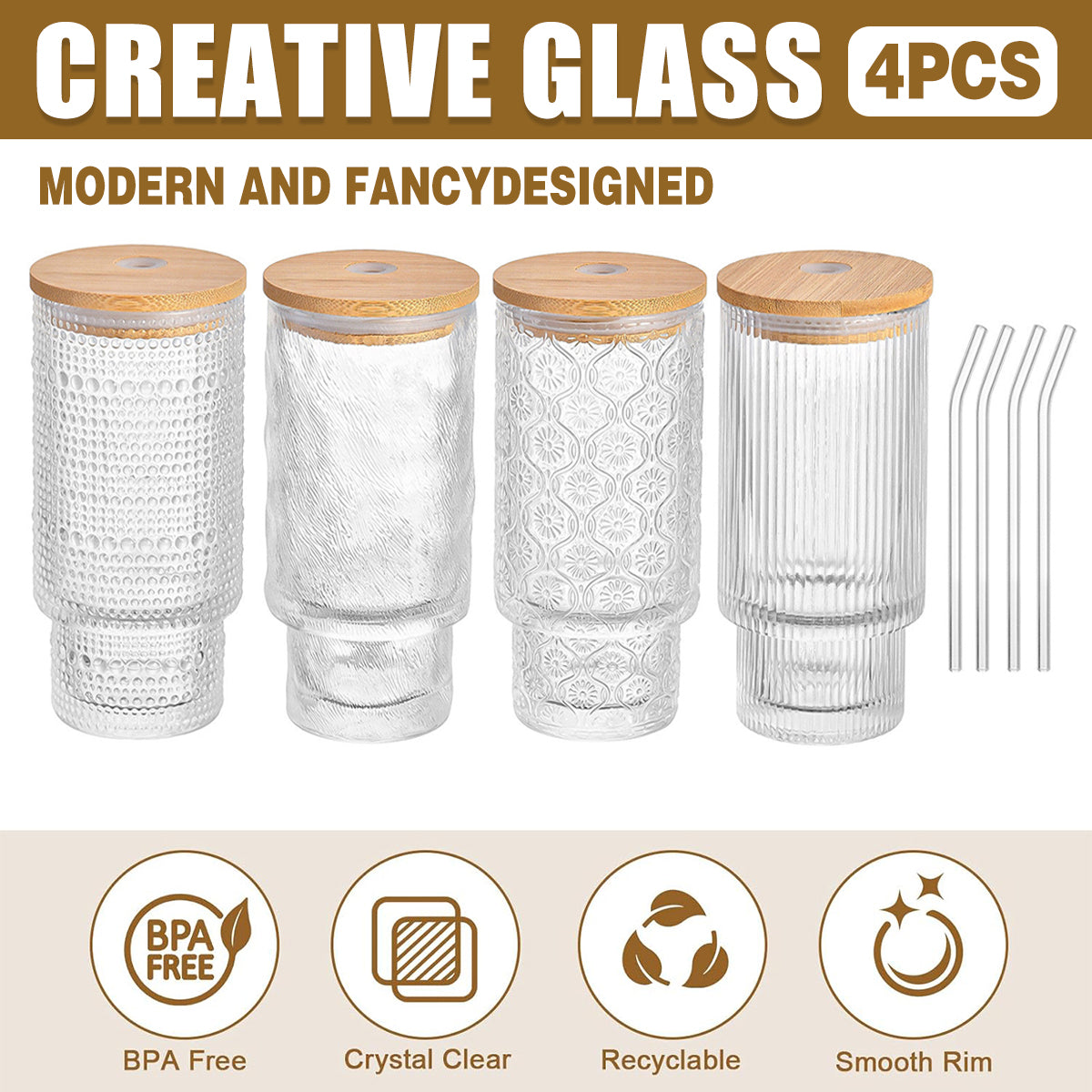 4PCS 11OZ Juice Cup with Lid and Straw Creative Glass Drink Cup for Home Office