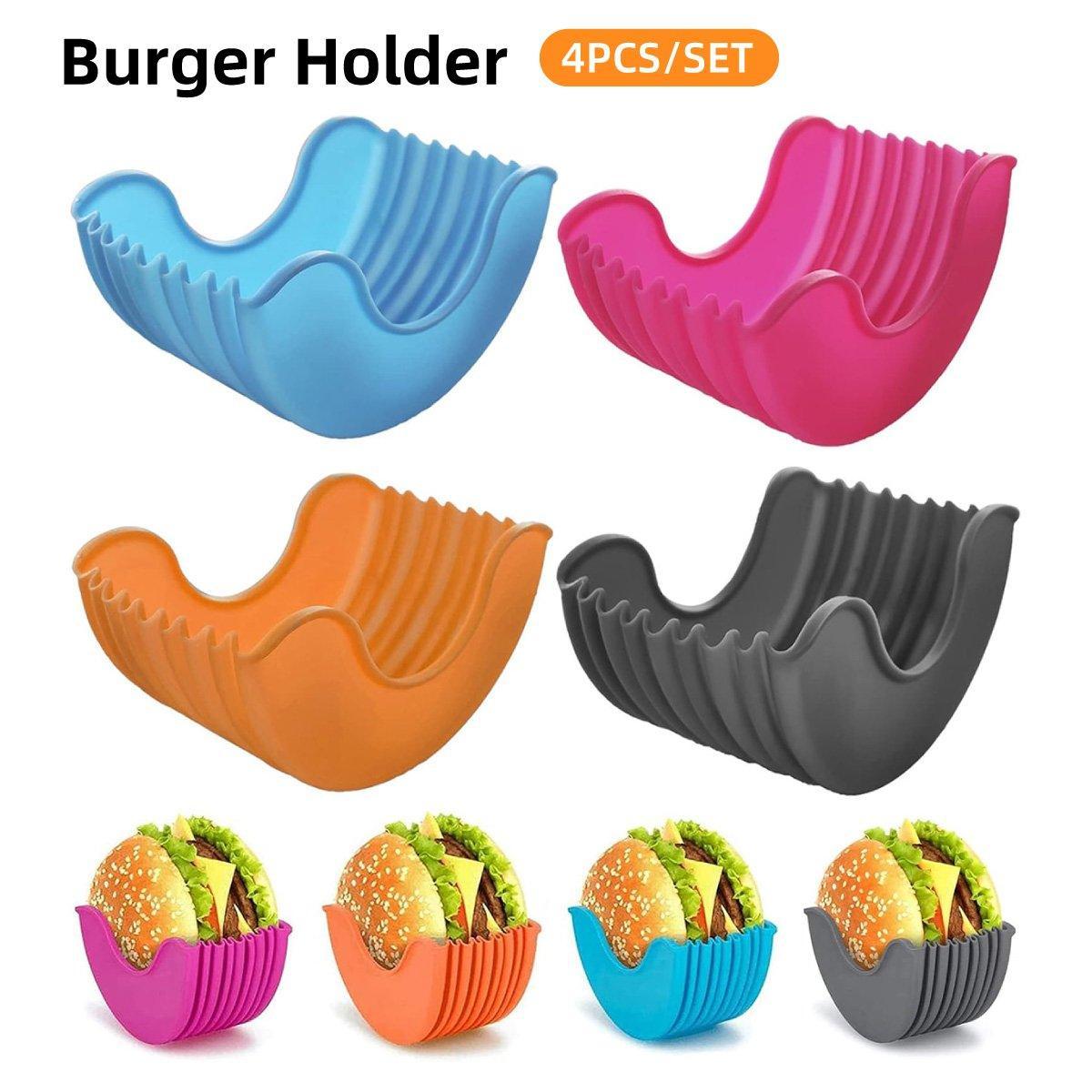 4PCS Hamburger Silicone Holder Sandwich Storage Rack Reusable Burger Fixed Box