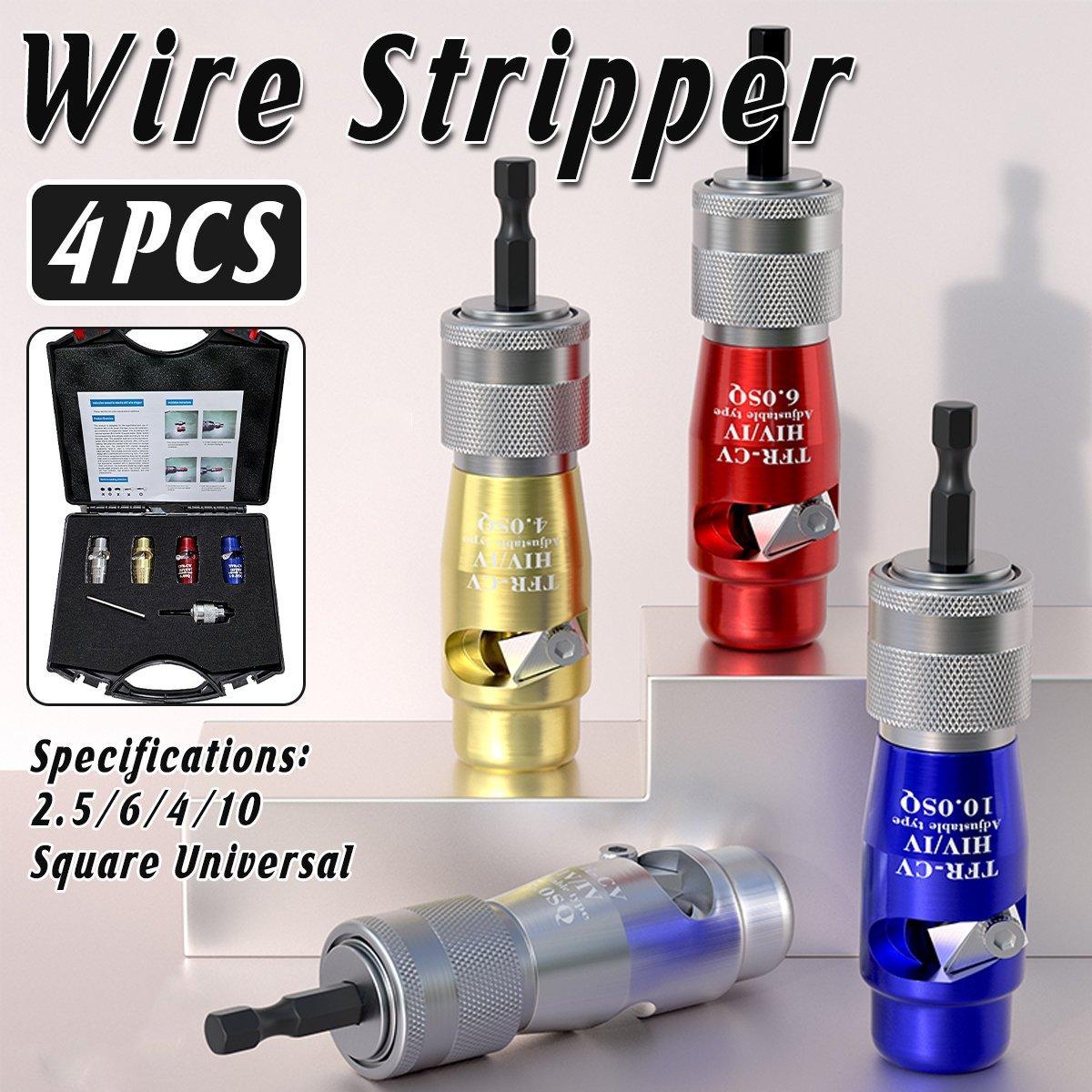 This 4PCS rotary electric wire stripper set is an essential tool for both professionals and DIY enthusiasts, designed to strip cables of various sizes with precision and ease. Built with a high-quality zinc alloy body and sharp alloy cutting blades, this tool ensures a clean and efficient stripping process, preventing damage to the internal wiring. The adjustable stripping length feature allows you to customize the cut, making it versatile for different wire types and sizes. Lightweight and durable, this wire stripper set is perfect for a wide range of electrical and construction tasks, offering long-lasting performance.