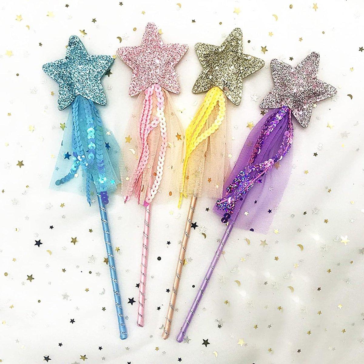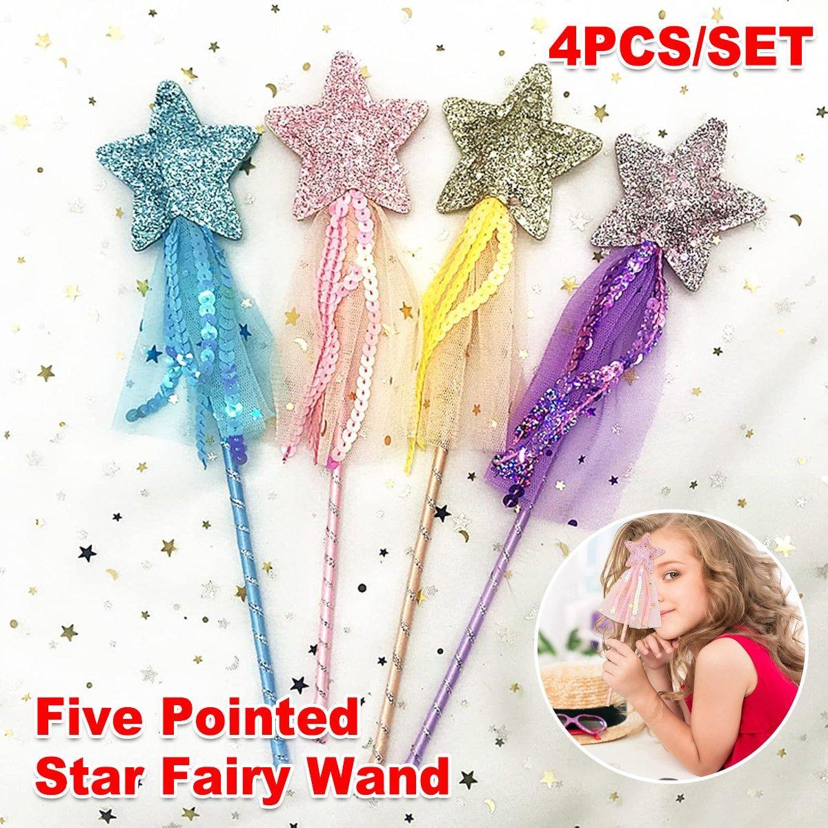 4pcs Sequin Fairy Wand Magic Pentagram Wand for Girls Party Favor Set