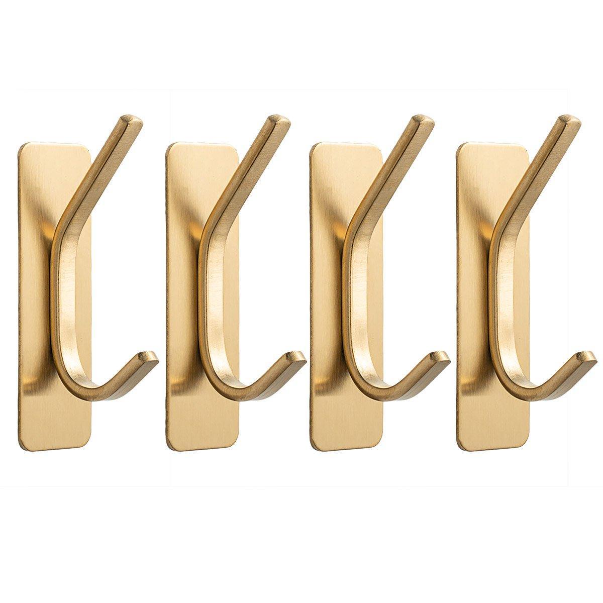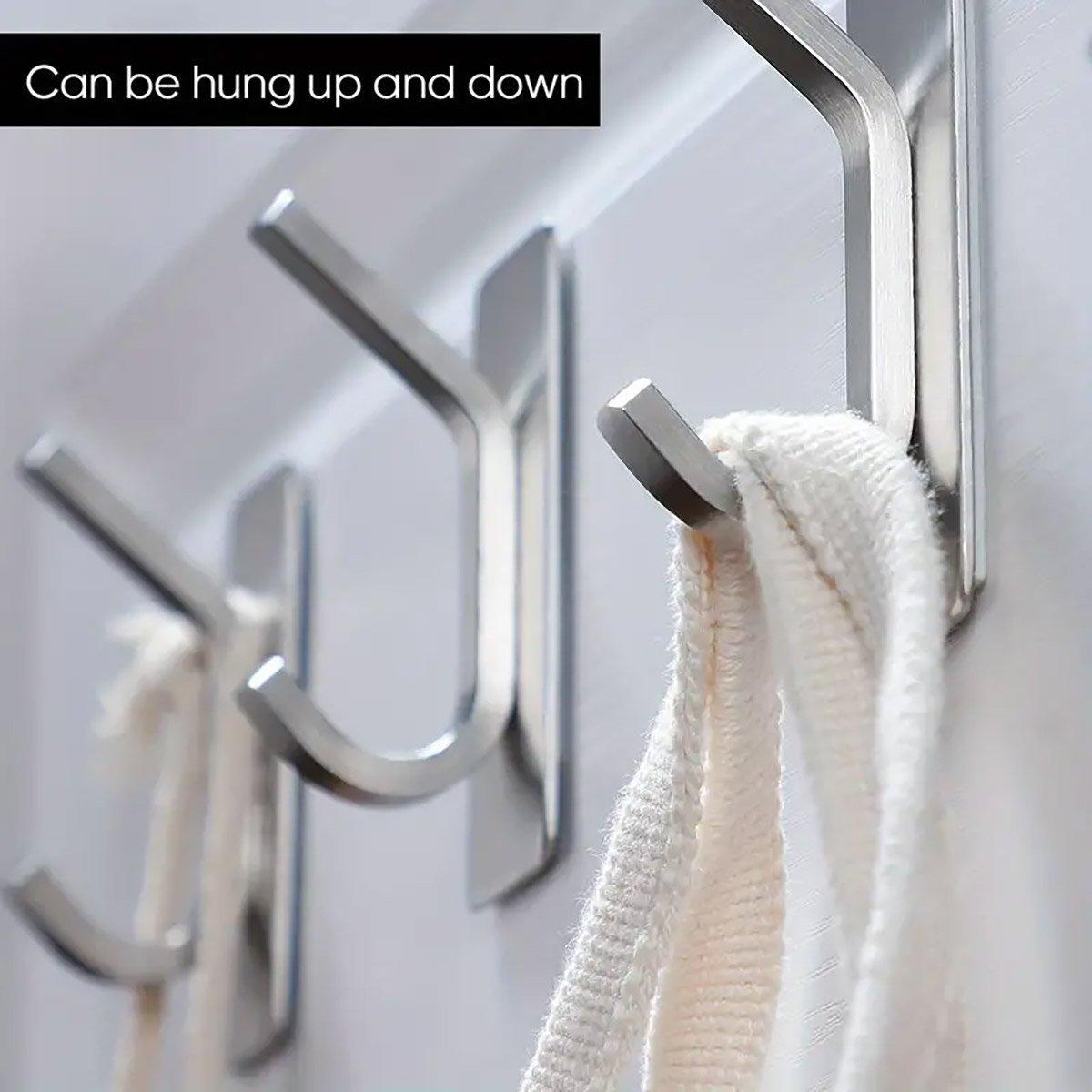 4pcs Stainless Steel Adhesive Hook Towel Hook Bathroom Kitchen Door Coat Hook