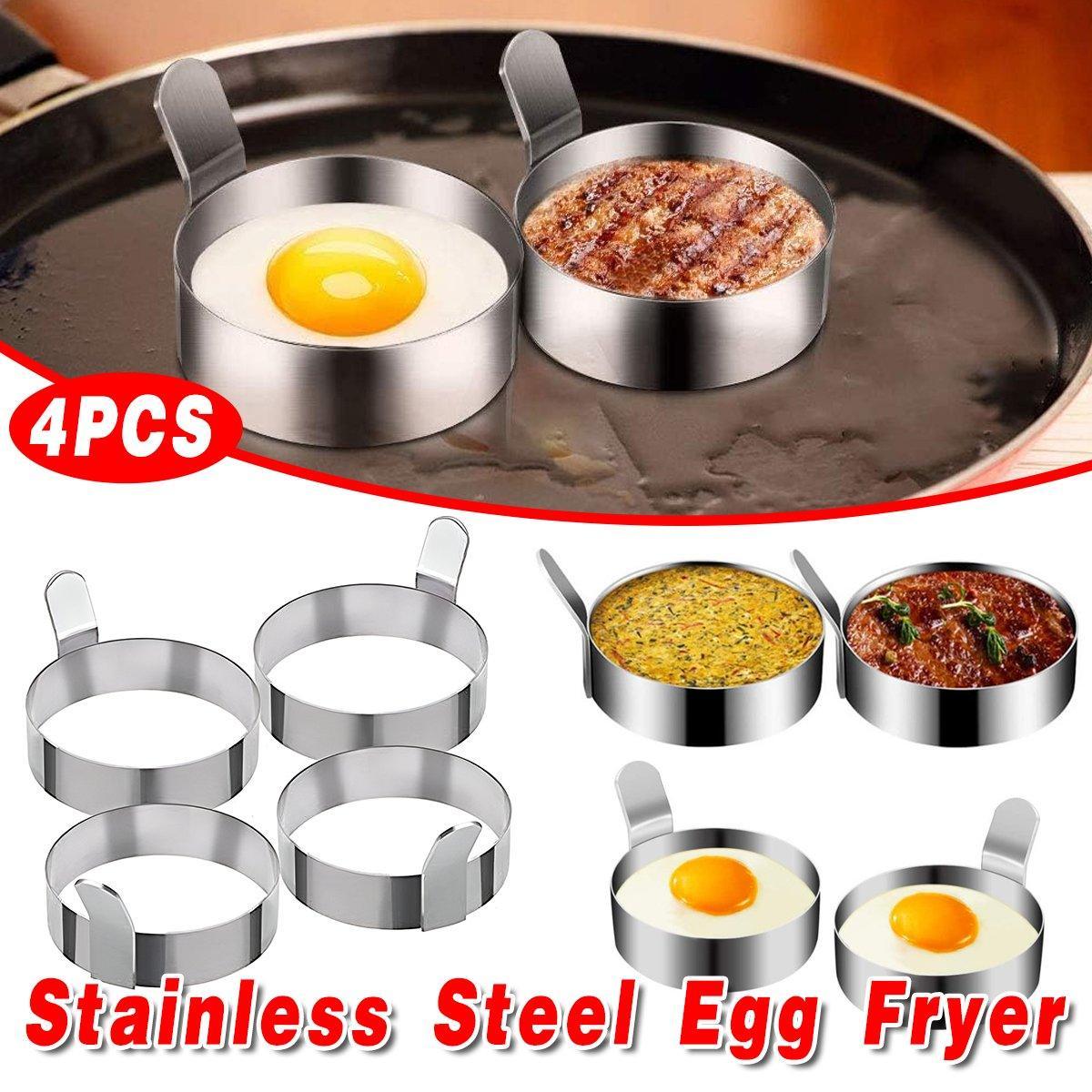 4pcs Stainless Steel Round Egg Omelette Mould Frying Ring Pancake Maker Tool