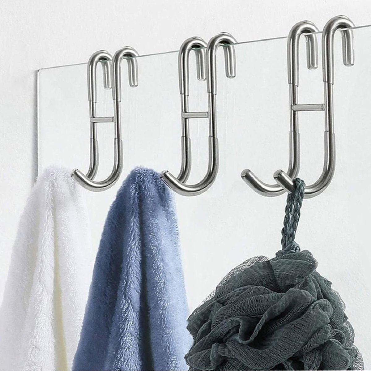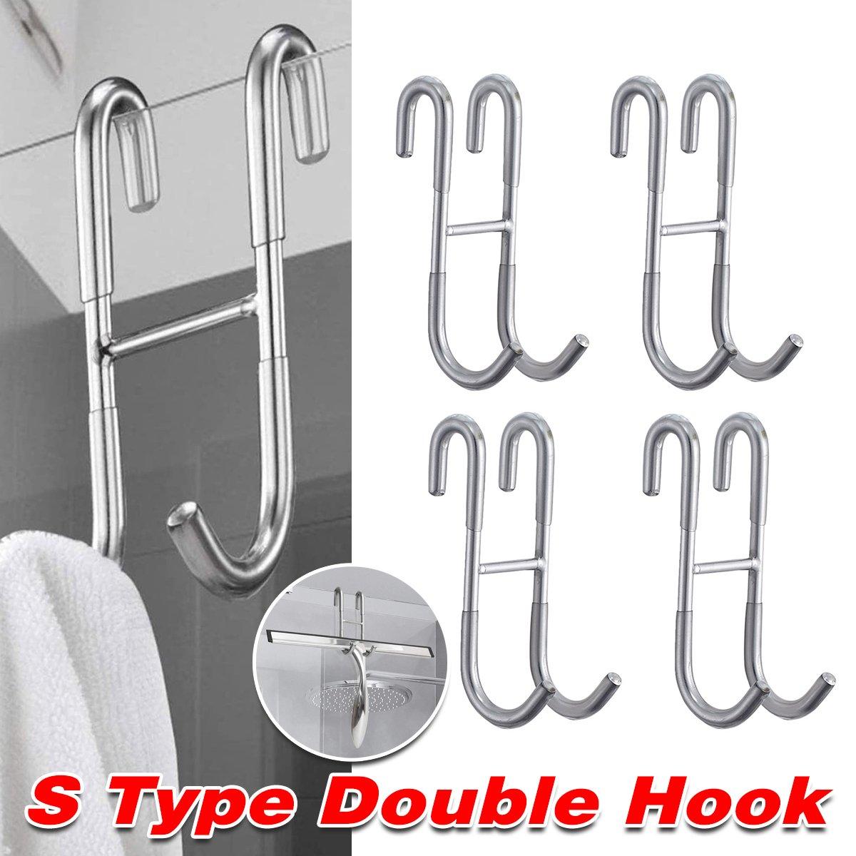 4PCS Stainless Steel S-Type Double Hooks for Kitchen Bathroom Closet Hanging