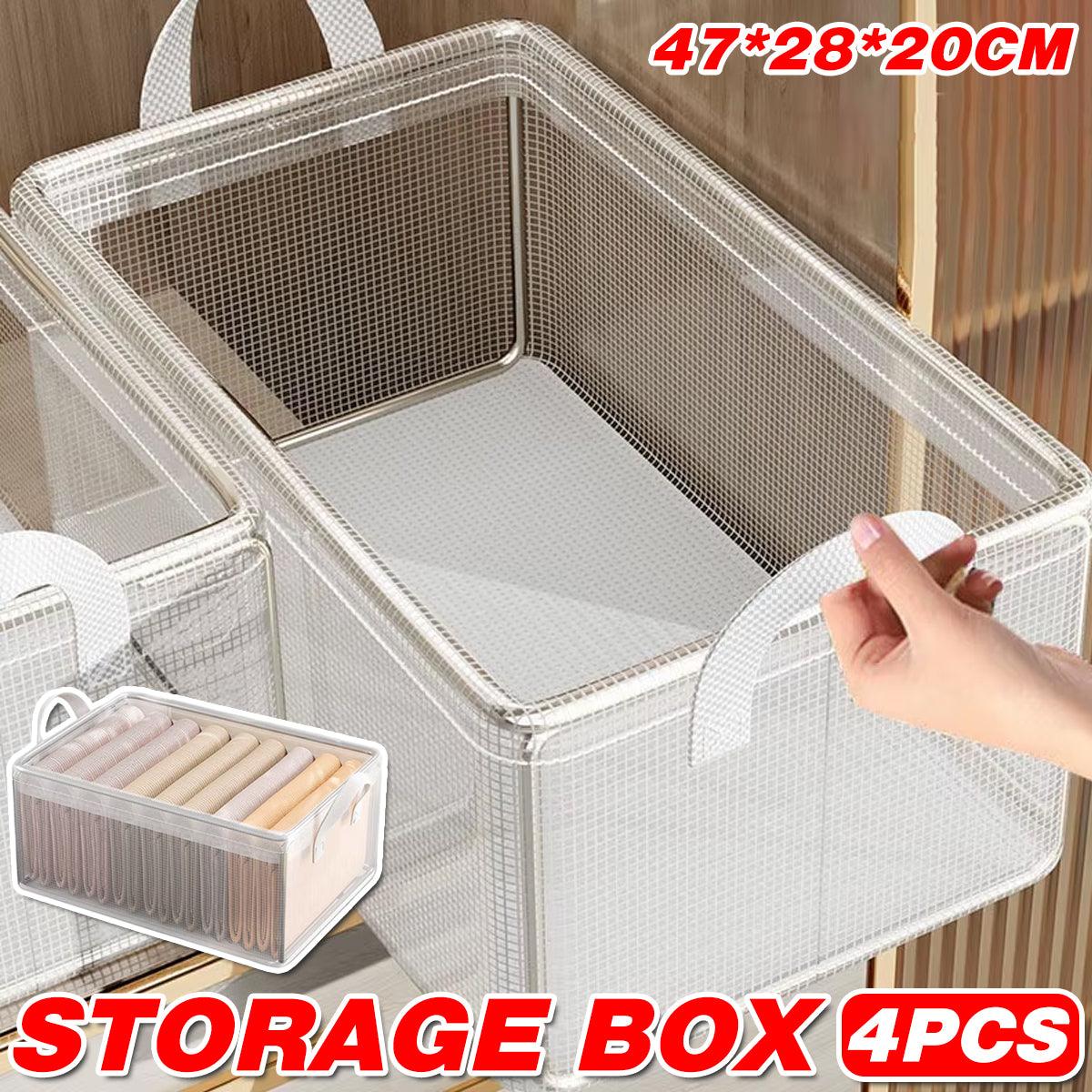 4pcs Transparent Clothes Storage Box Thickened Pants Basket Wardrobe Organizer