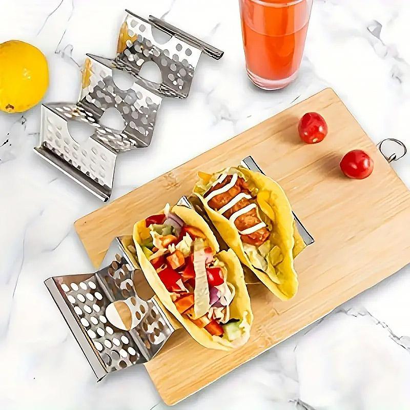 4pcs W Shape Stainless Steel Taco Holder Stand for Pancakes and Food Serving