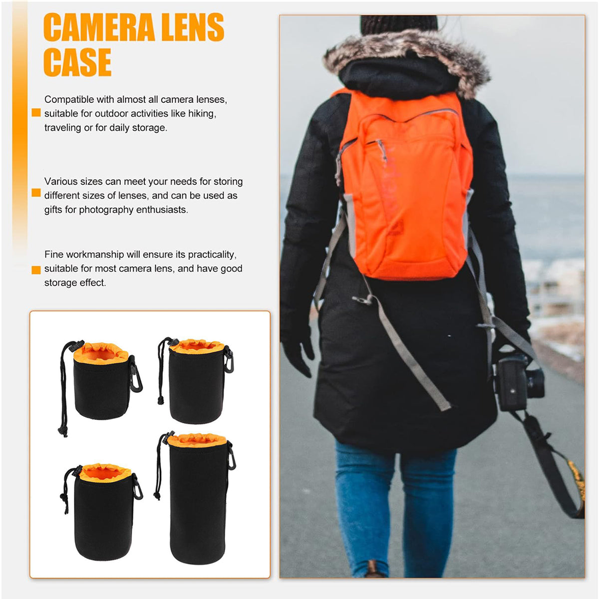 4PCS Waterproof Camera Lens Bag Durable for DSLR Mirrorless Camera Lens Storage